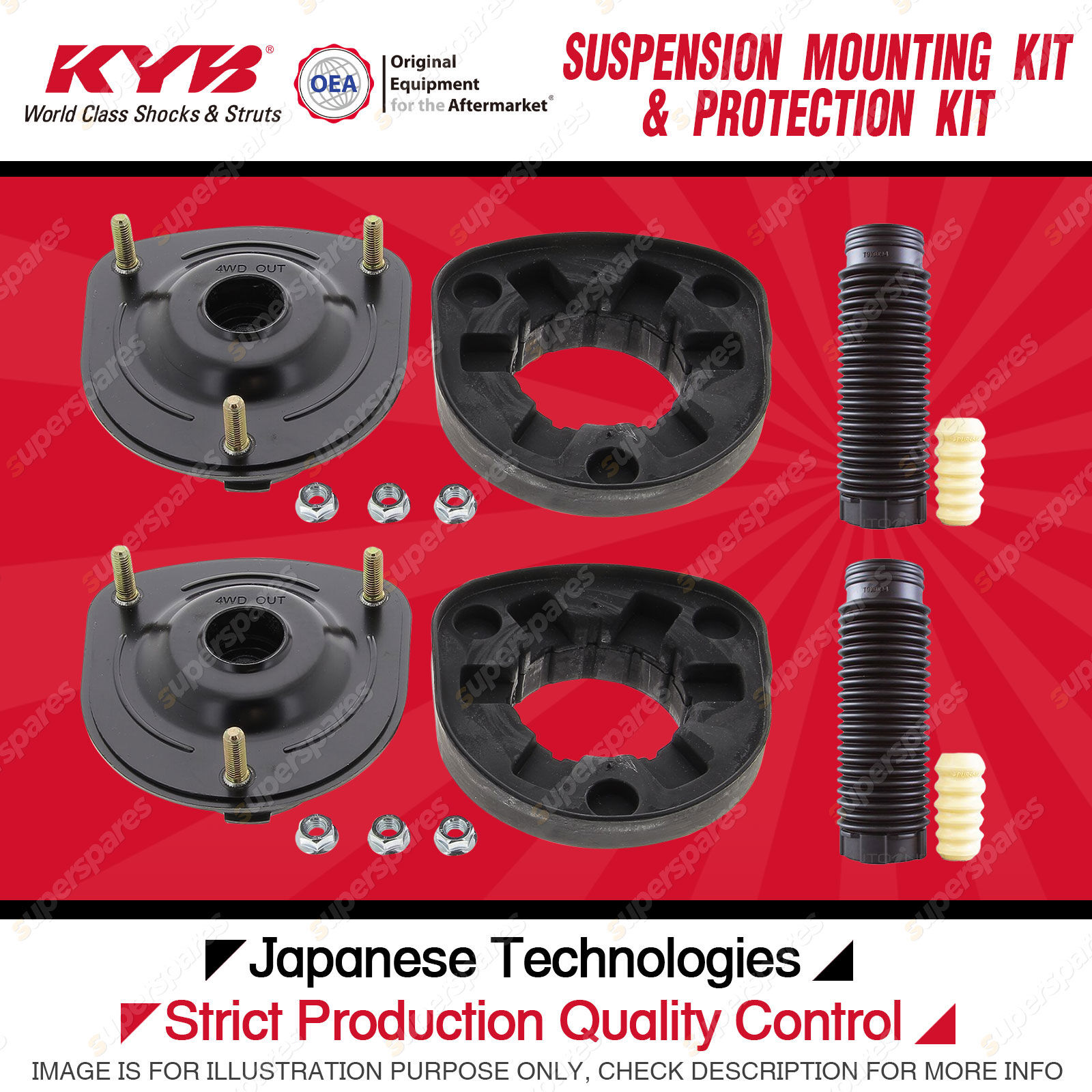 Content : KYB Rear Strut Top Mounts Bump Stop Dust Cover Kit