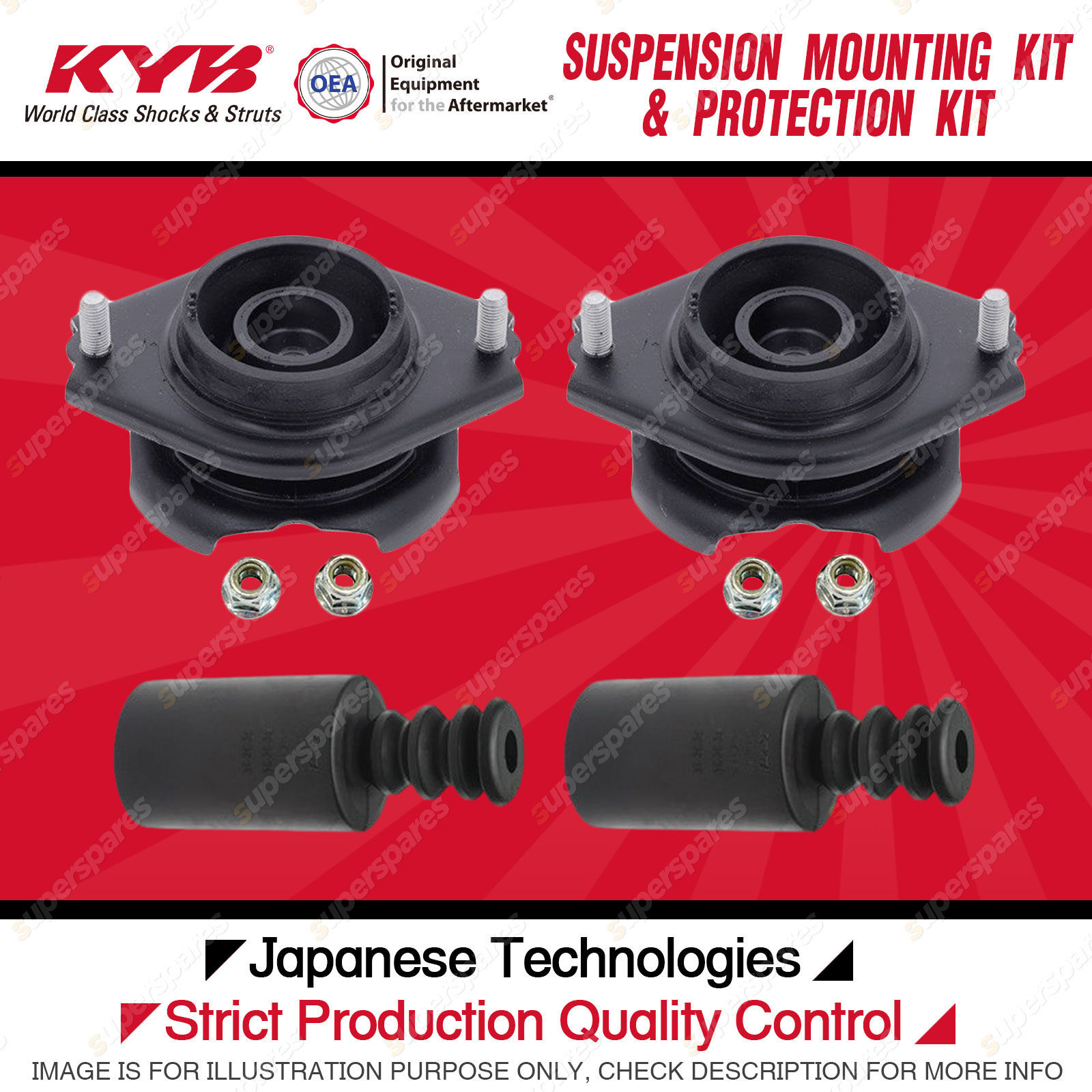 Content : KYB Rear Strut Top Mounts Bump Stop Dust Cover Kit