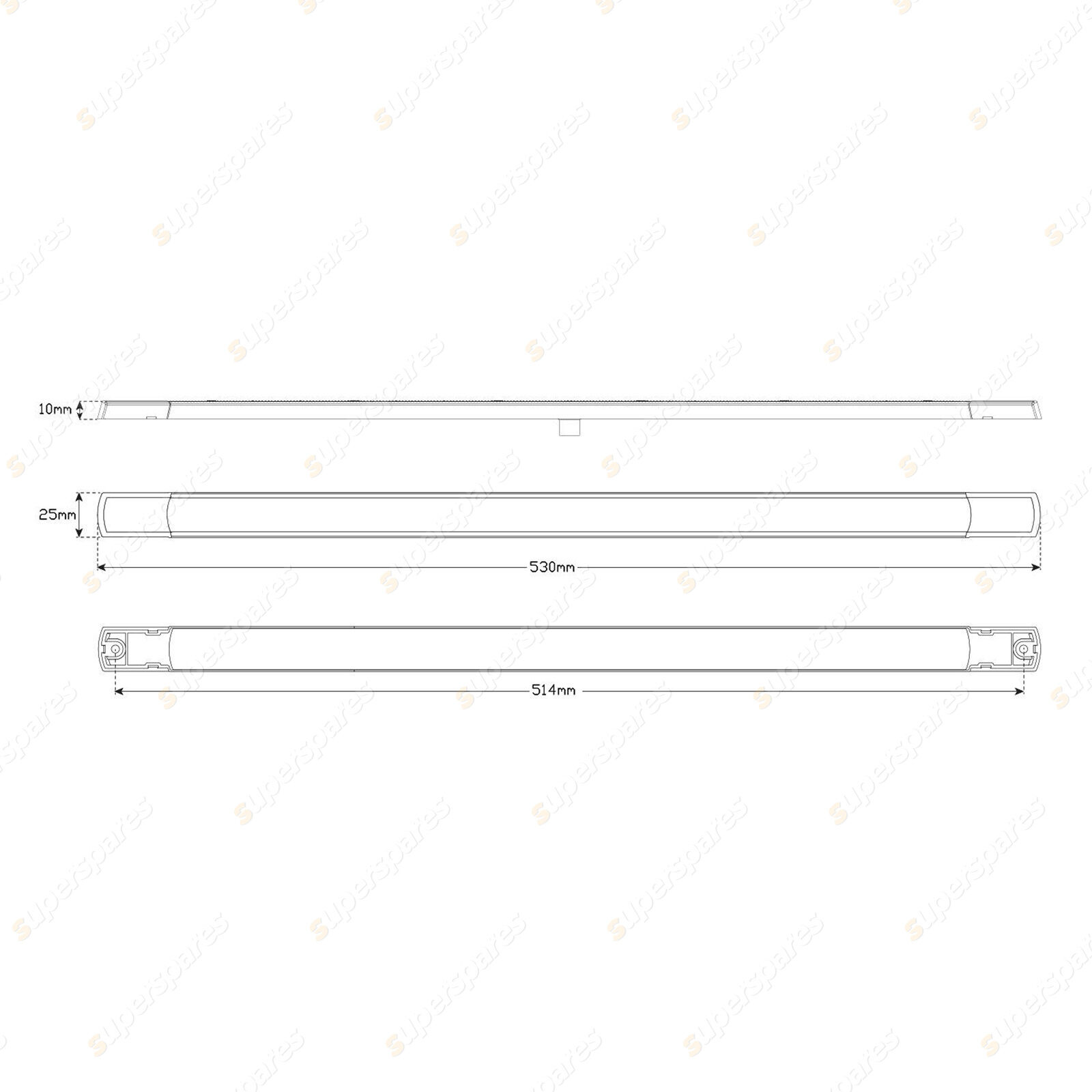 Indicator lamp, 12 Volt, 533mm x 25mm x 10mm, Bulk, White box,ADR, 5 Year Warranty
