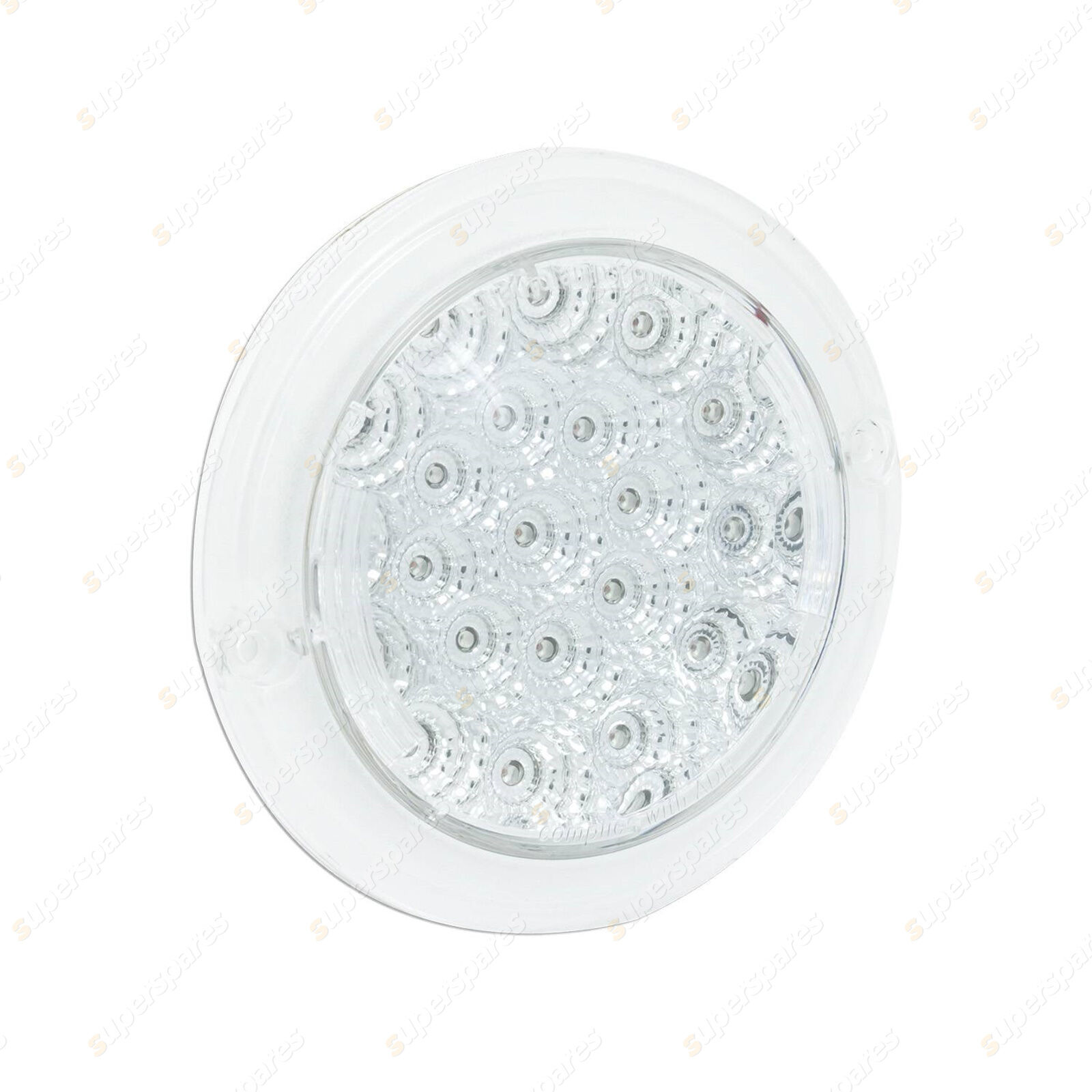 Round Indicator Lamp with Clear lens, 130mm diameter, recessed mount, 12 volt only, ADR Approved. Bulk Pack.