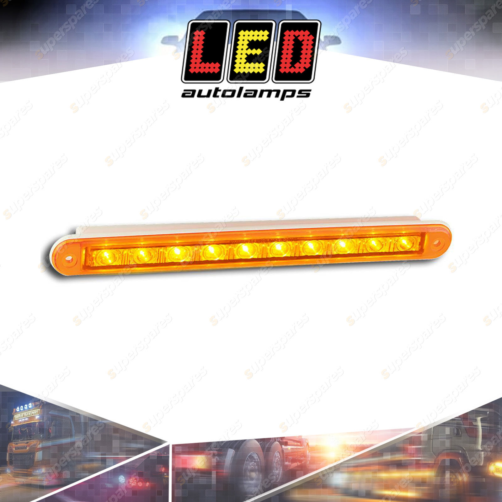 Sequential Indicator Strip Lamp in 12volt with 10 square LEDs, Amber Lens, Recessed mount with 40cm hardwired. Size: 237 x 25 x 18mm. ECE Approved, Bulk packaging