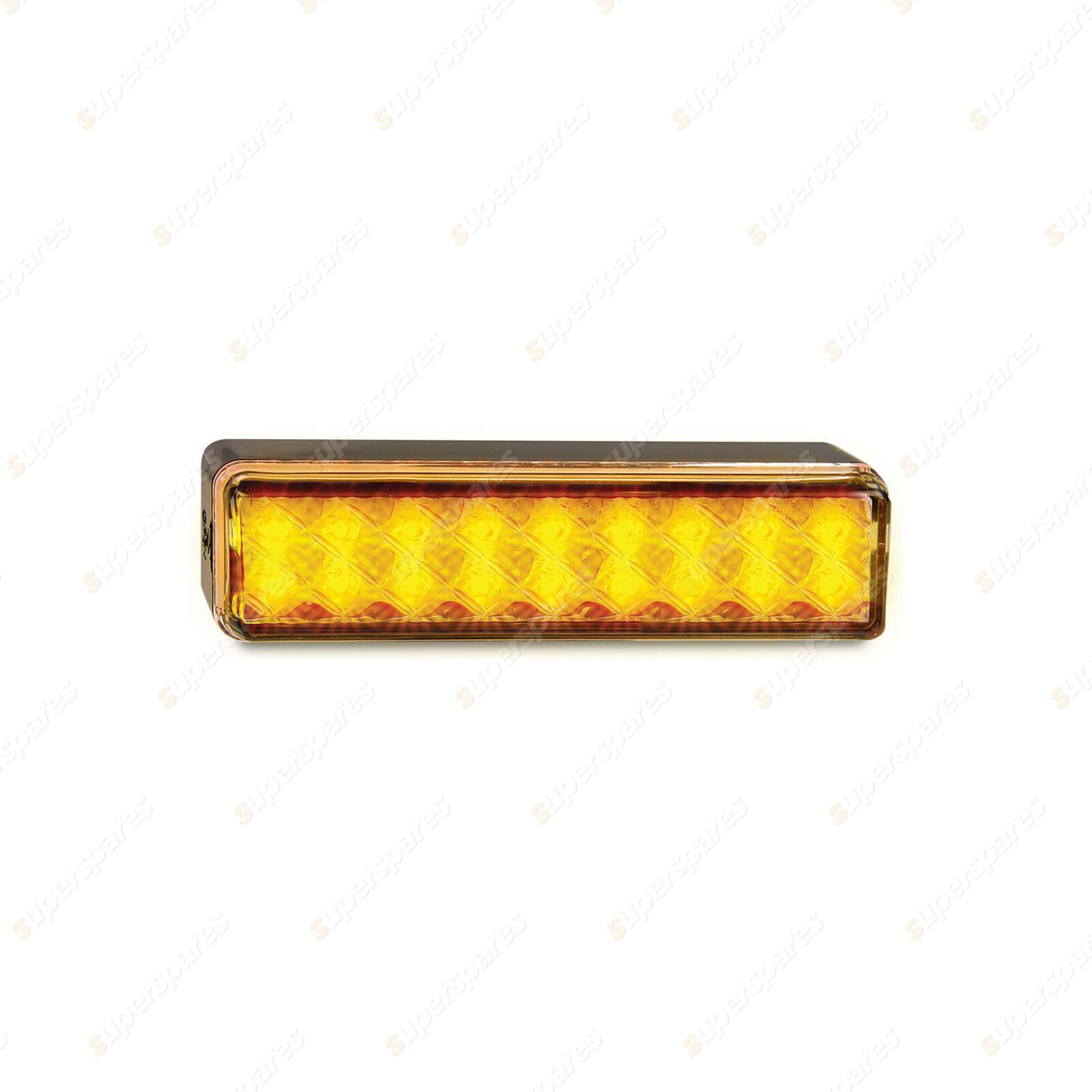 Front direction indicator lamp with 18 square LEDs, 24 Volt only. 135mm x 38mm x 24mm. Blister pack with black base. ADR Approved