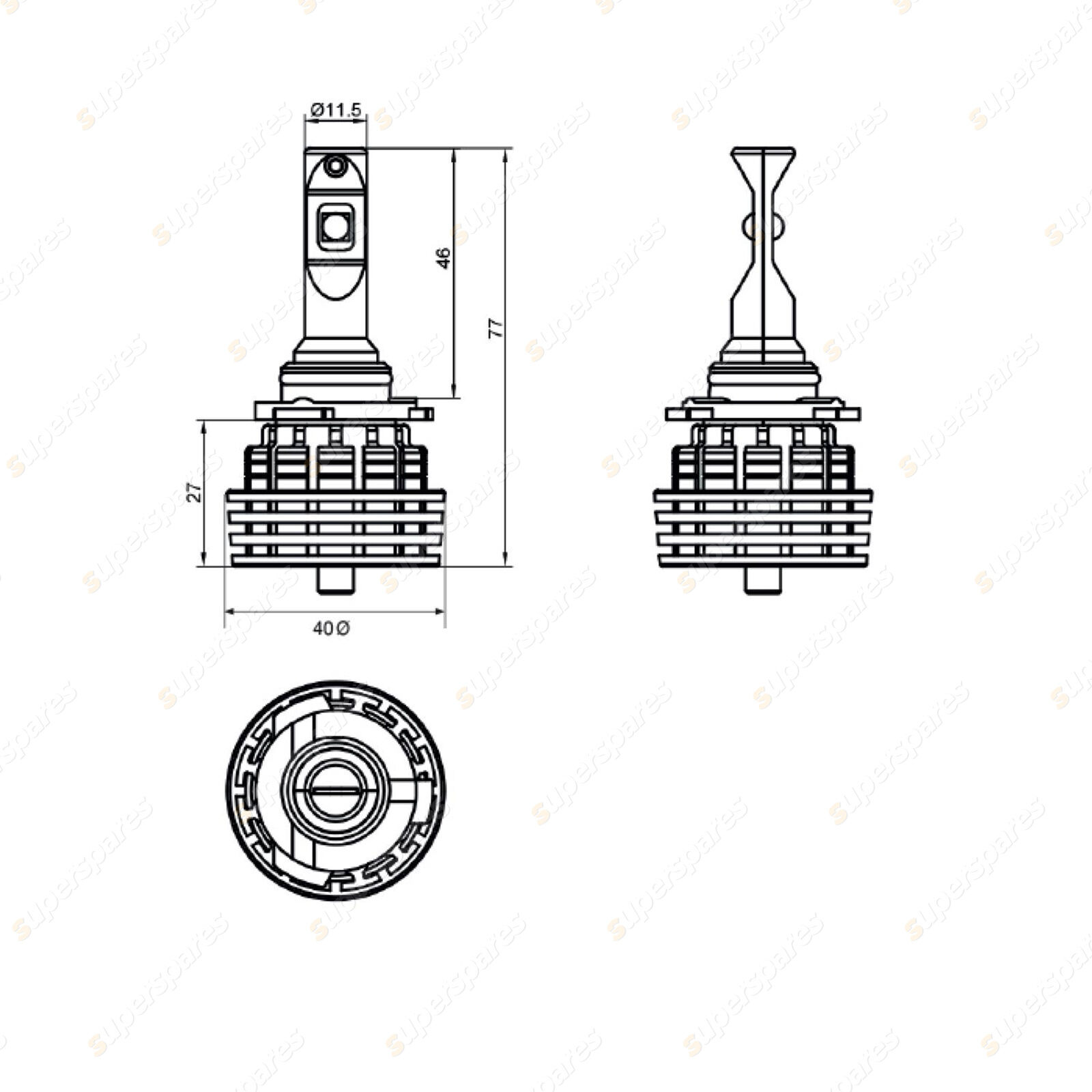 HB4 LED Headlight Kit, Single Beam, 77mm High x 40mmm Round, 9-32 Volt, Twin Blister