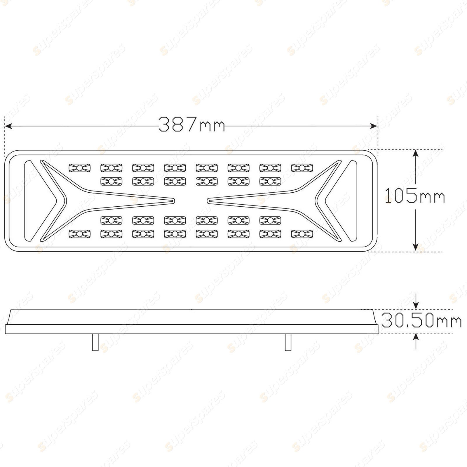 LHS Stop/Tail/Indicator/Reverse with LHS plug, Multivolt, 385 x 104 x x31mm, ECE, BULK