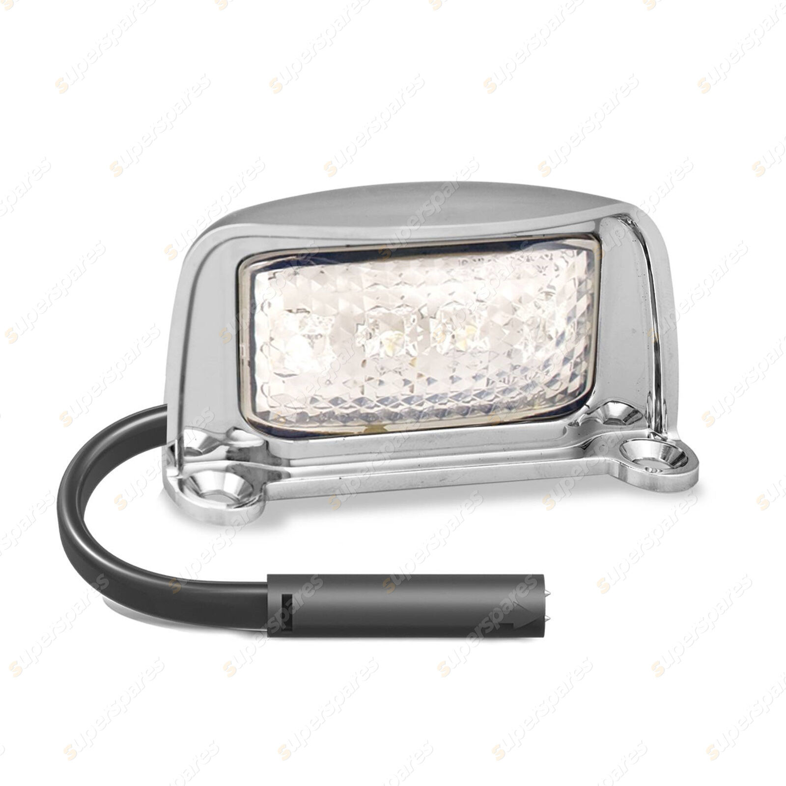Licence Plate Lamp Chrome Bracket. Muti Volt 76mm x 41mm x 27mm with 40cm wire, Truck Harness Plug. ADR approved CRN 36280