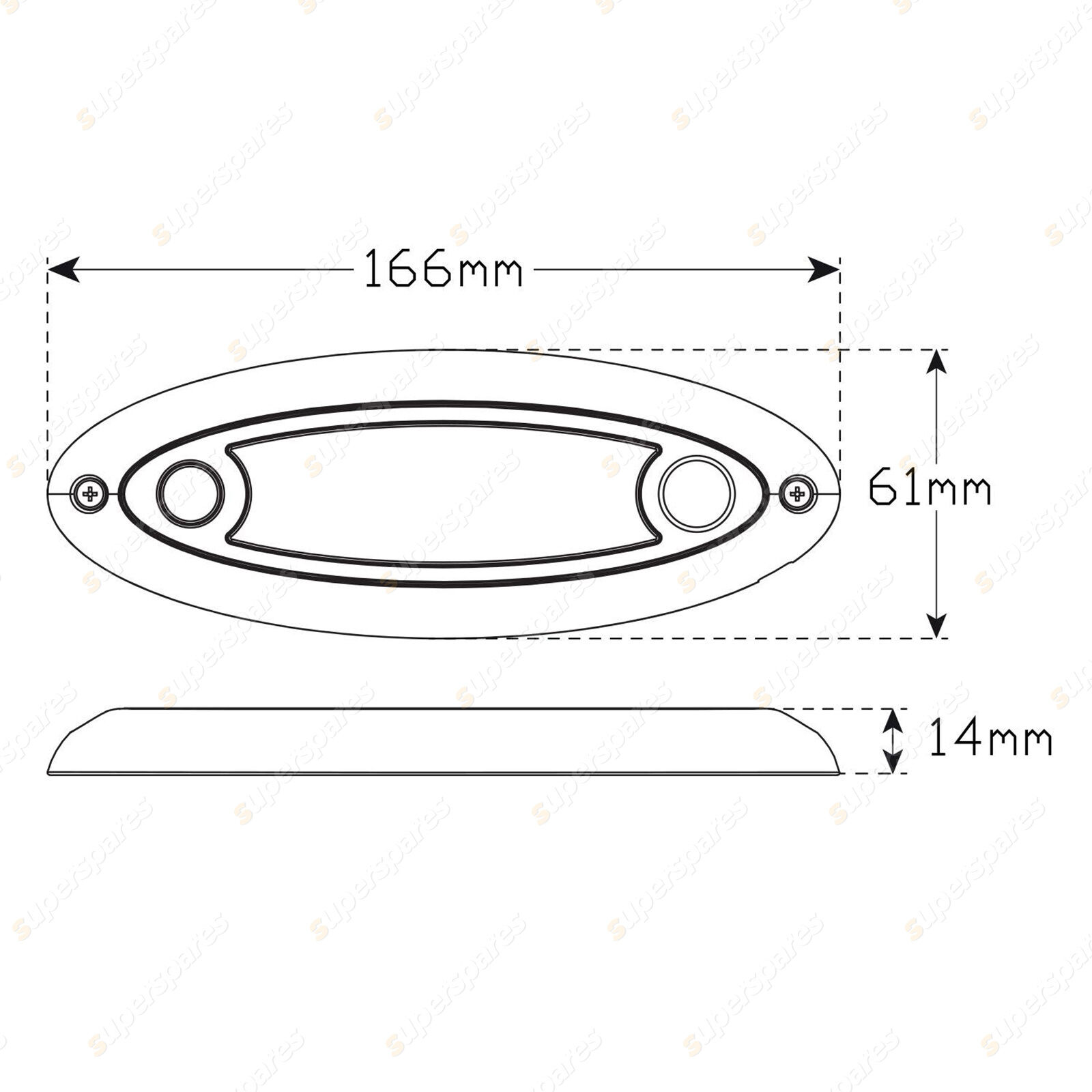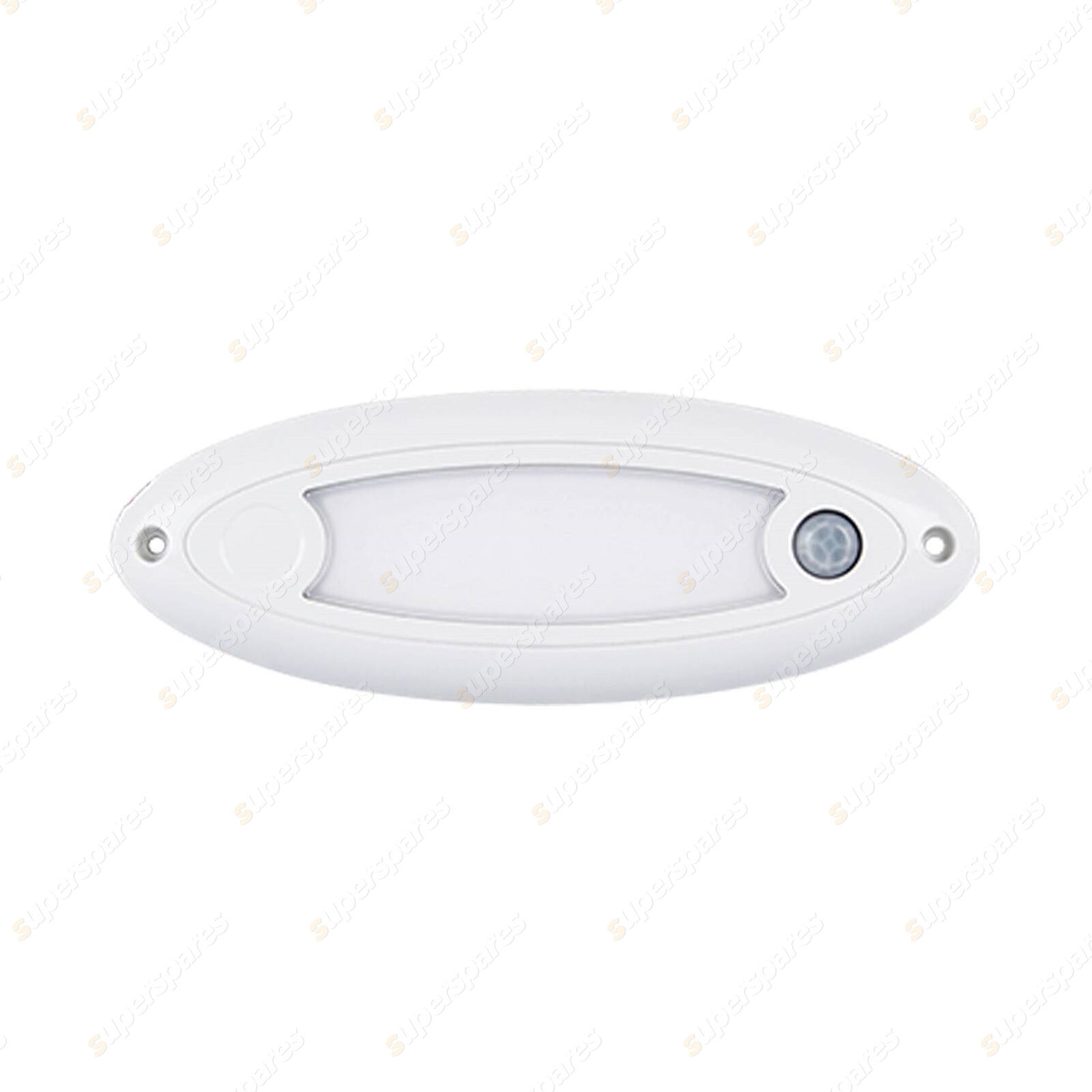 Small Oval Interior/Exterior Lamp, White with Polycarbonate Lens/Cover and Aluminium Base and 20cm cable - PIR Sensor, 10-30 Volt, IP67, 240 Effective Lumen, 4500K, 166mm x 61mm x 14mm, Box, 2 Year Warranty