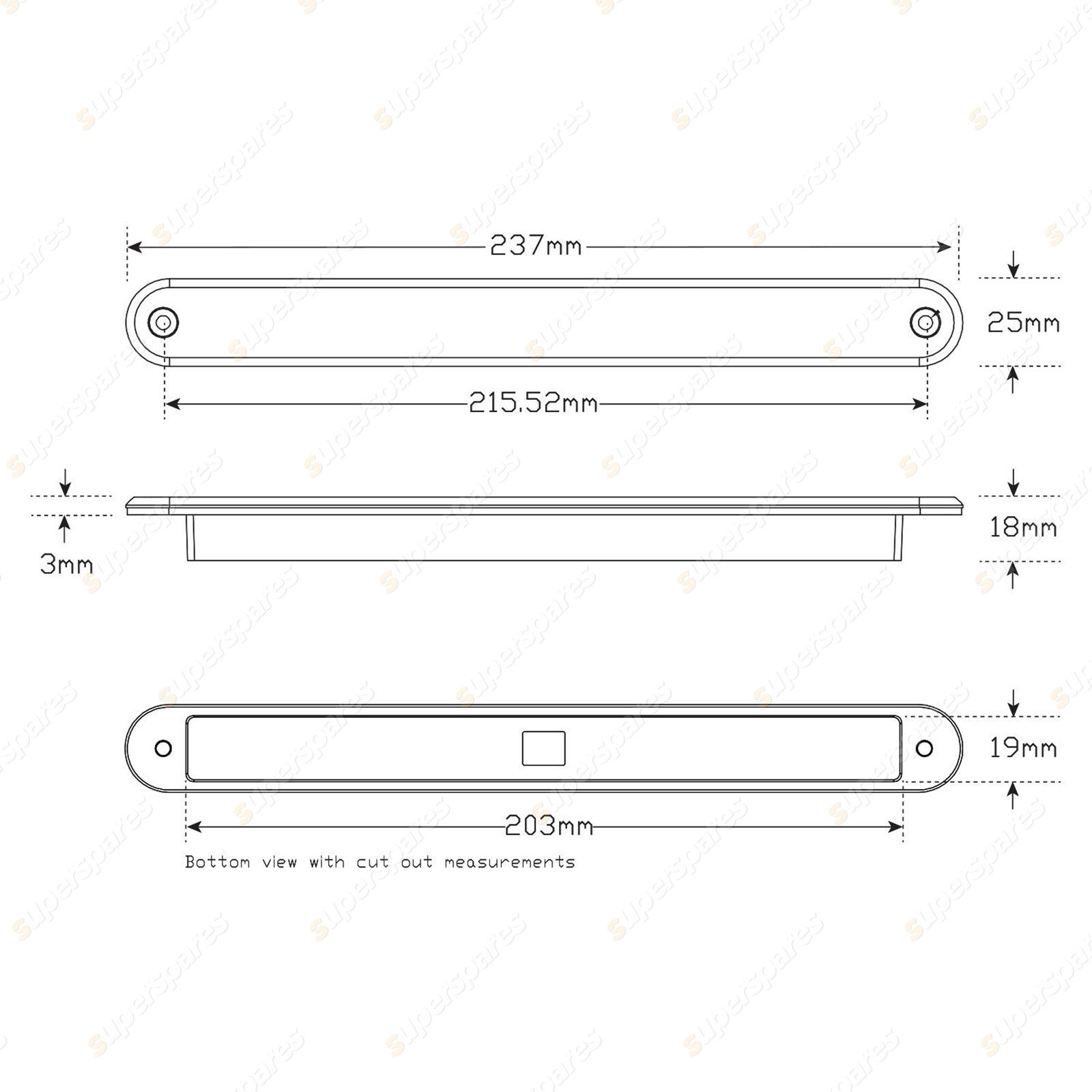 Contents : Rear Indicator Strip Light - Clear Lens Recessed Mount 12V 10 LED