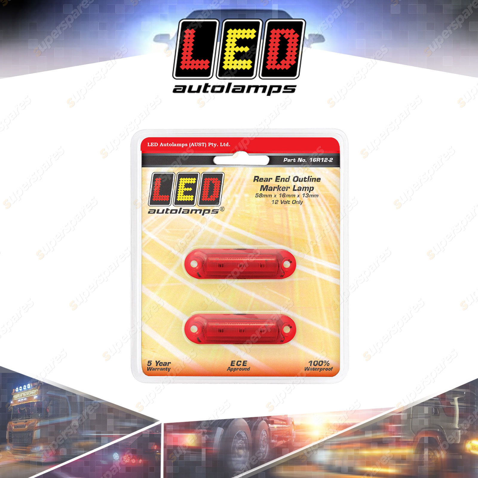 Rear Position Marker, 12 Volt Only, Super Small Design, 58mmx16mmx13mm, ECE Approved, Blister Pack of 2, 5 Year Warranty