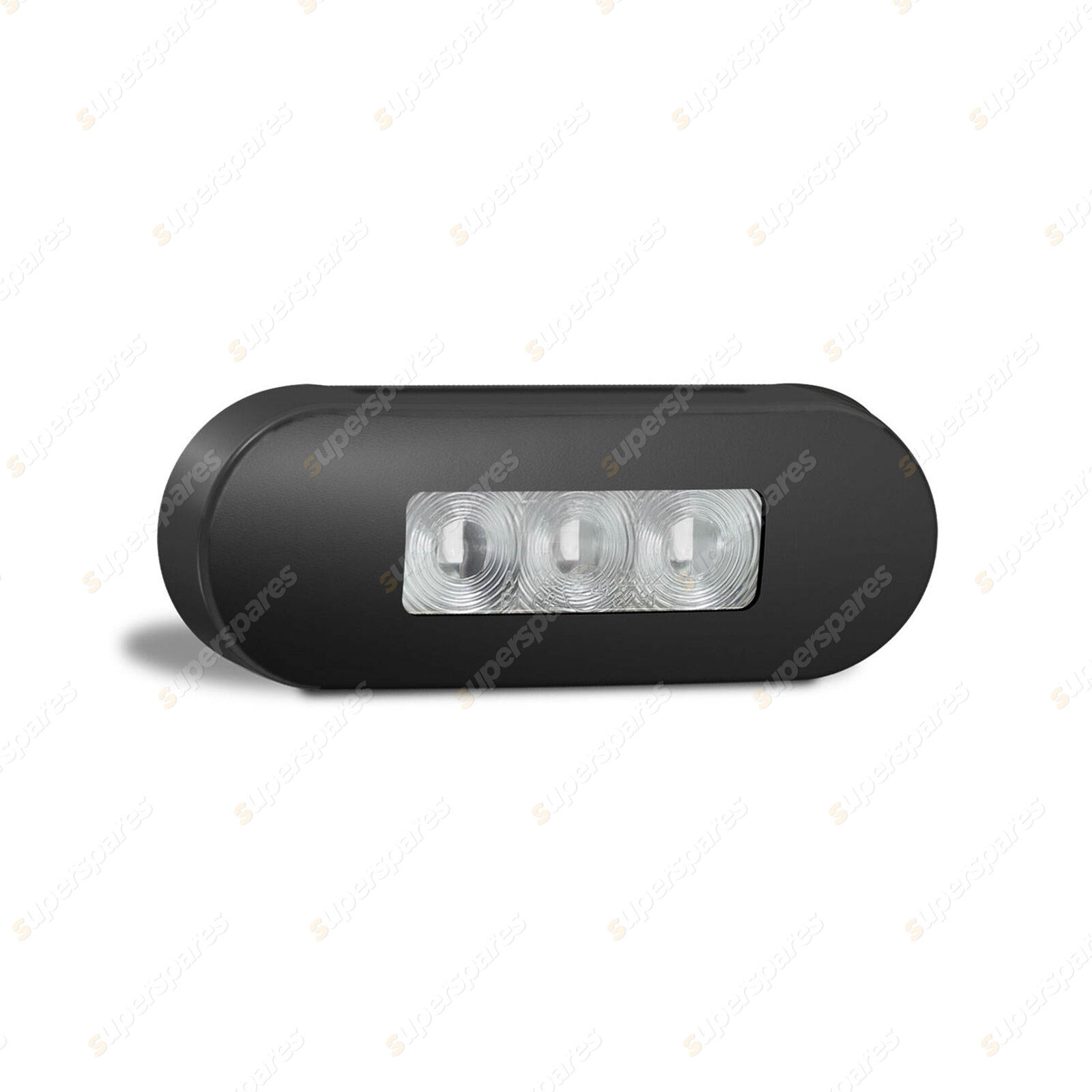 Red Rear End Outline Marker, clear lens coloured LEDs, black stainless steel bezel, 12-24V, 86x31x10mm, Bulk, ADR, 46821