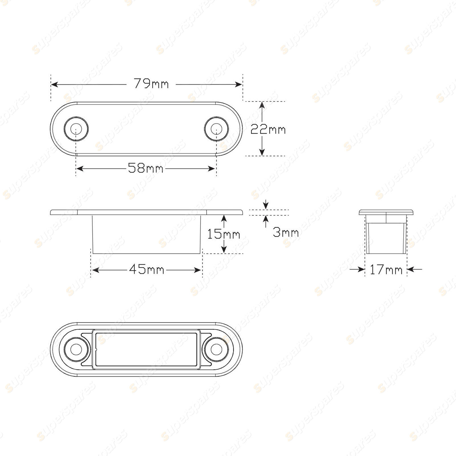 Rear End Outline Marker, Recessed Fitting, 12-24V, 79x22x3mm, Twin Blister, ECE Approved, 5 Year Warranty