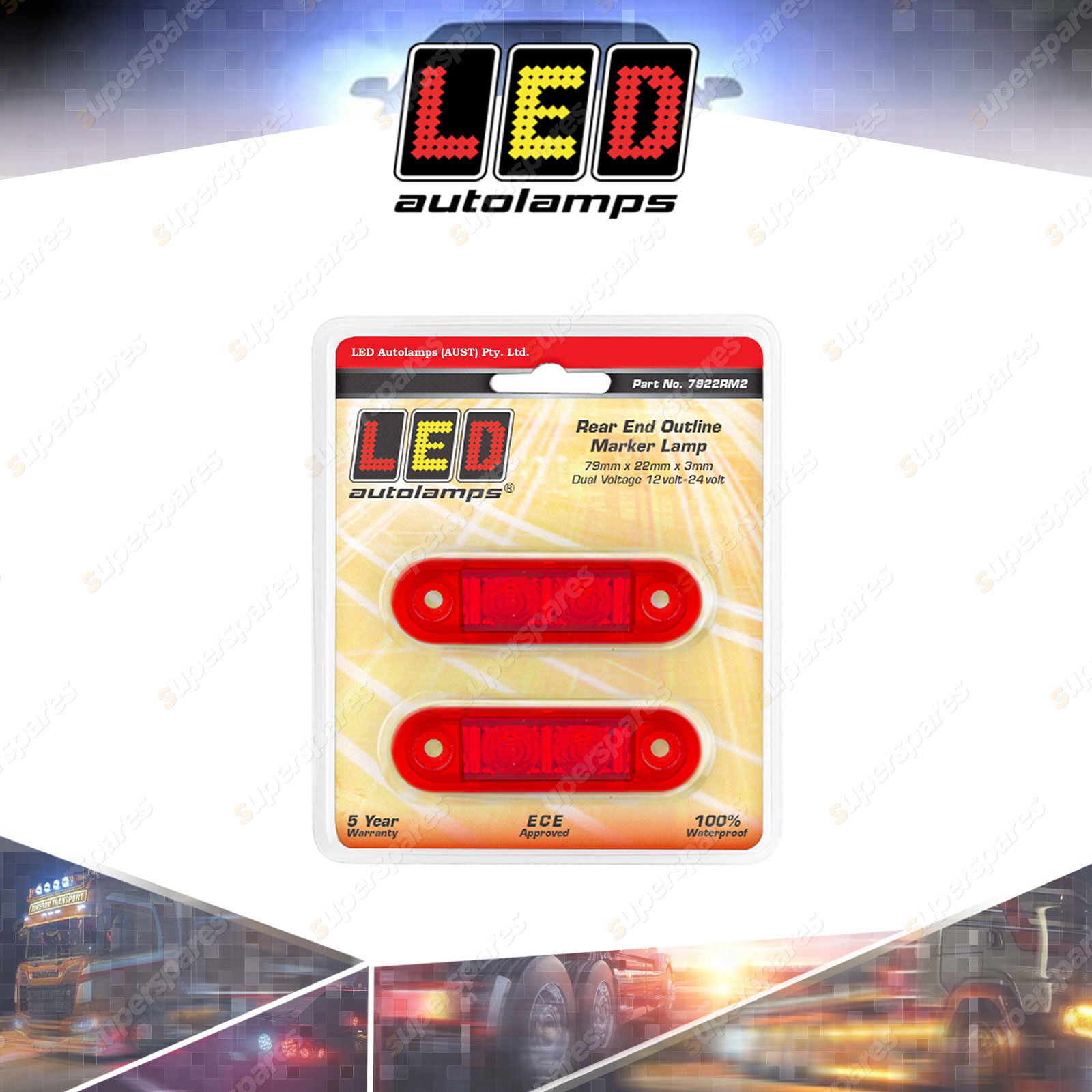 Contents : Red Side Marker Light - 2 LED 12-24V 2 LED Lamp Twin Blister