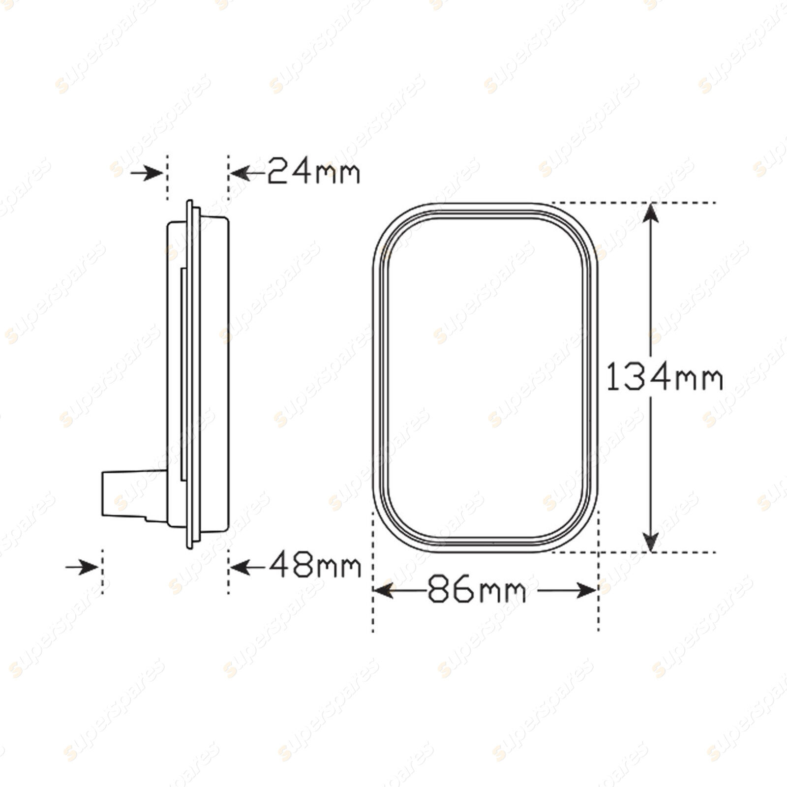 Stop/Tail Lamp with Reflector Lamp Only Recessed Fitting, 9 & 32 Volt, 135mm x 87mm x 22mm, Bulk Packaging, ECE Approved, 5 Year Warranty
