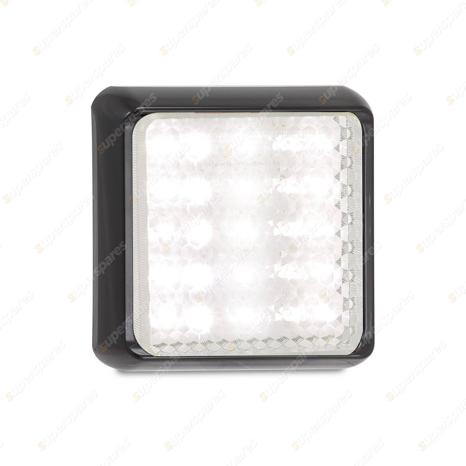 12volt & 24volt Reversing Lamp with 25 white LED's. 100mm x 100mm x 120mm x 120mm Bracket and 30cm wire. ADR Approved CRN 35793