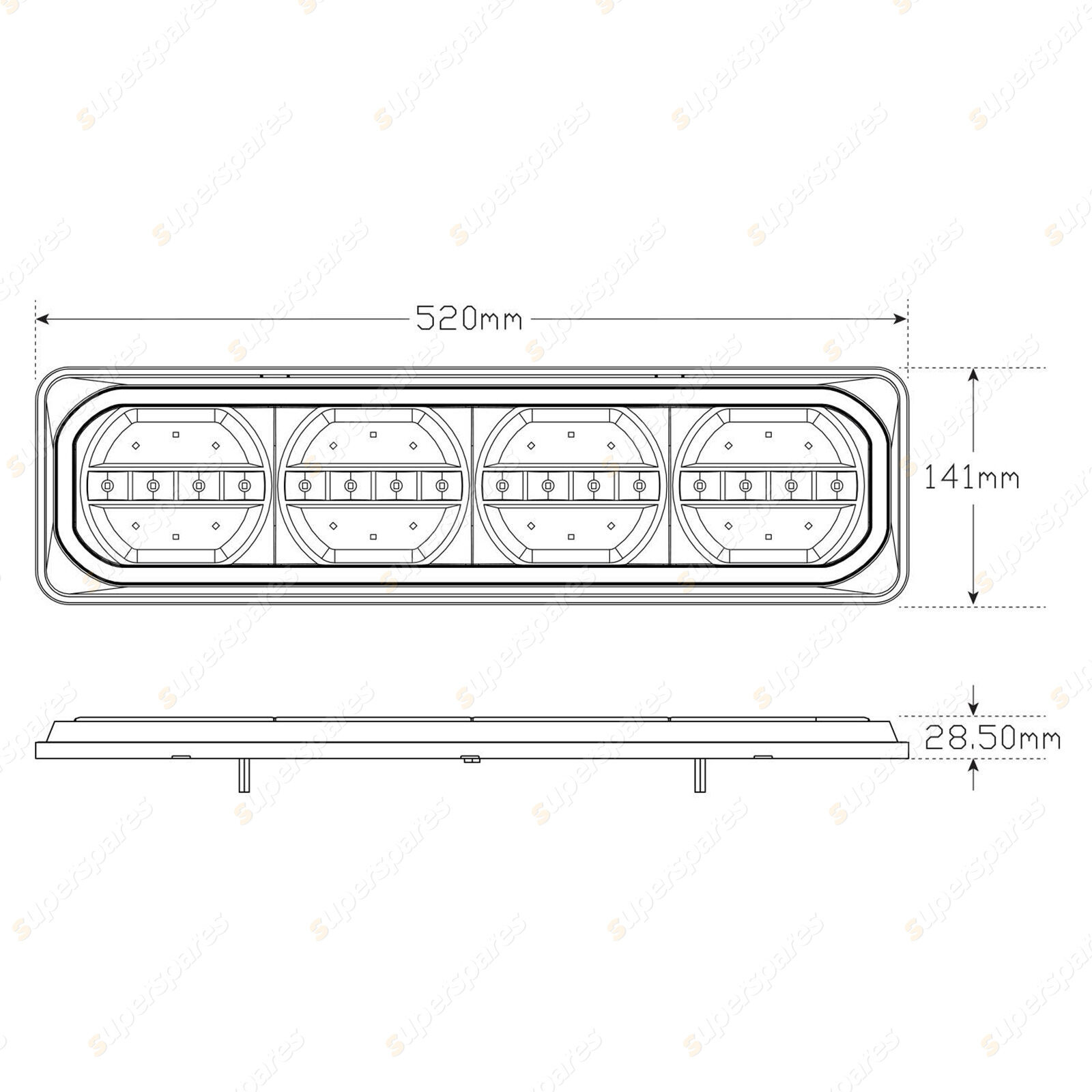 LHS, Stop/Tail/Indicator/Reverse Diffused Tail Function with Sequential Indicator, Multivolt, 520 x 140 x 31mm, ECE, BULK