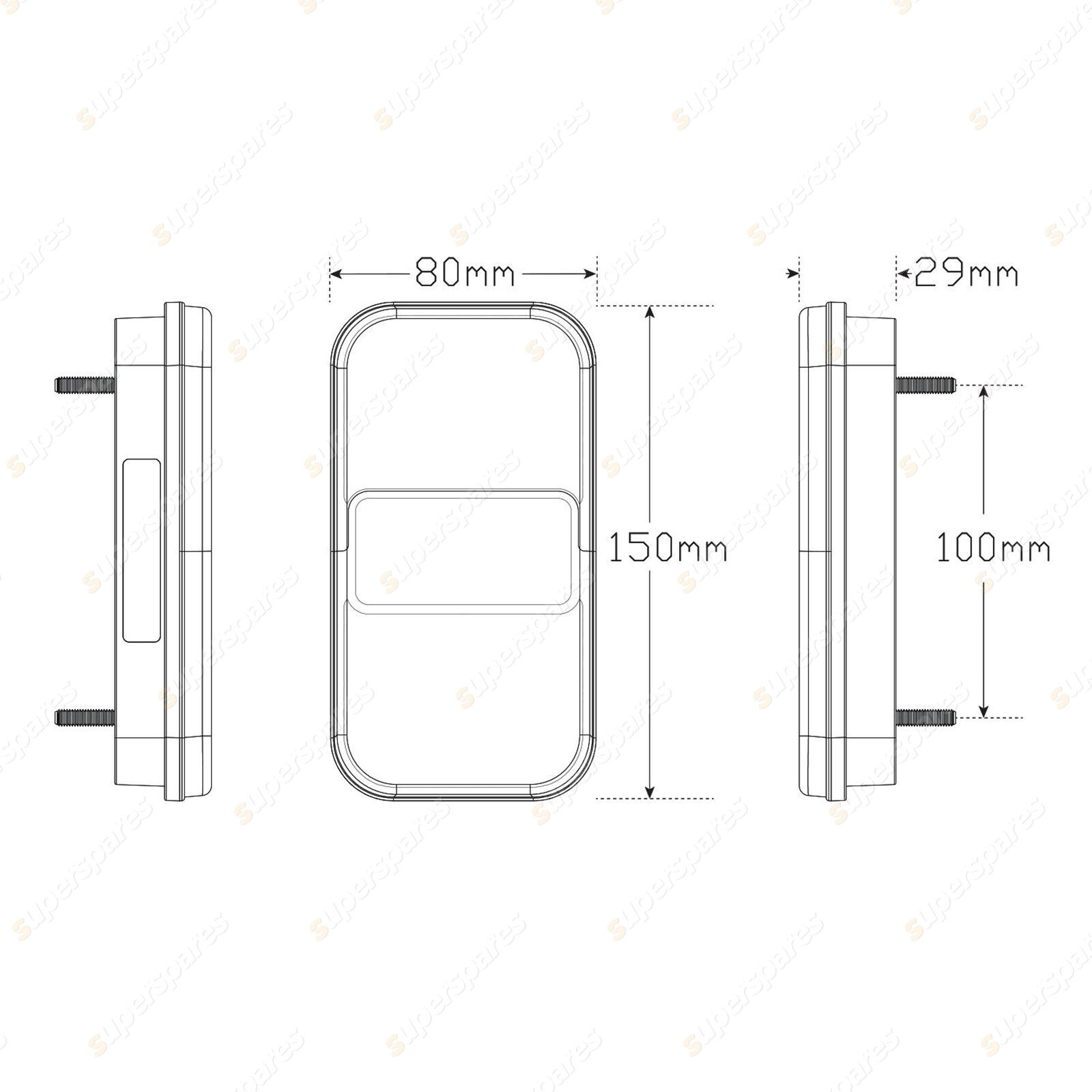 Stop,Tail, Indicator,Licence Plate Lamp with Reflector, 12 Volt, 150 x 80 x 29mm,10m cable Twin Blister, ECE approval