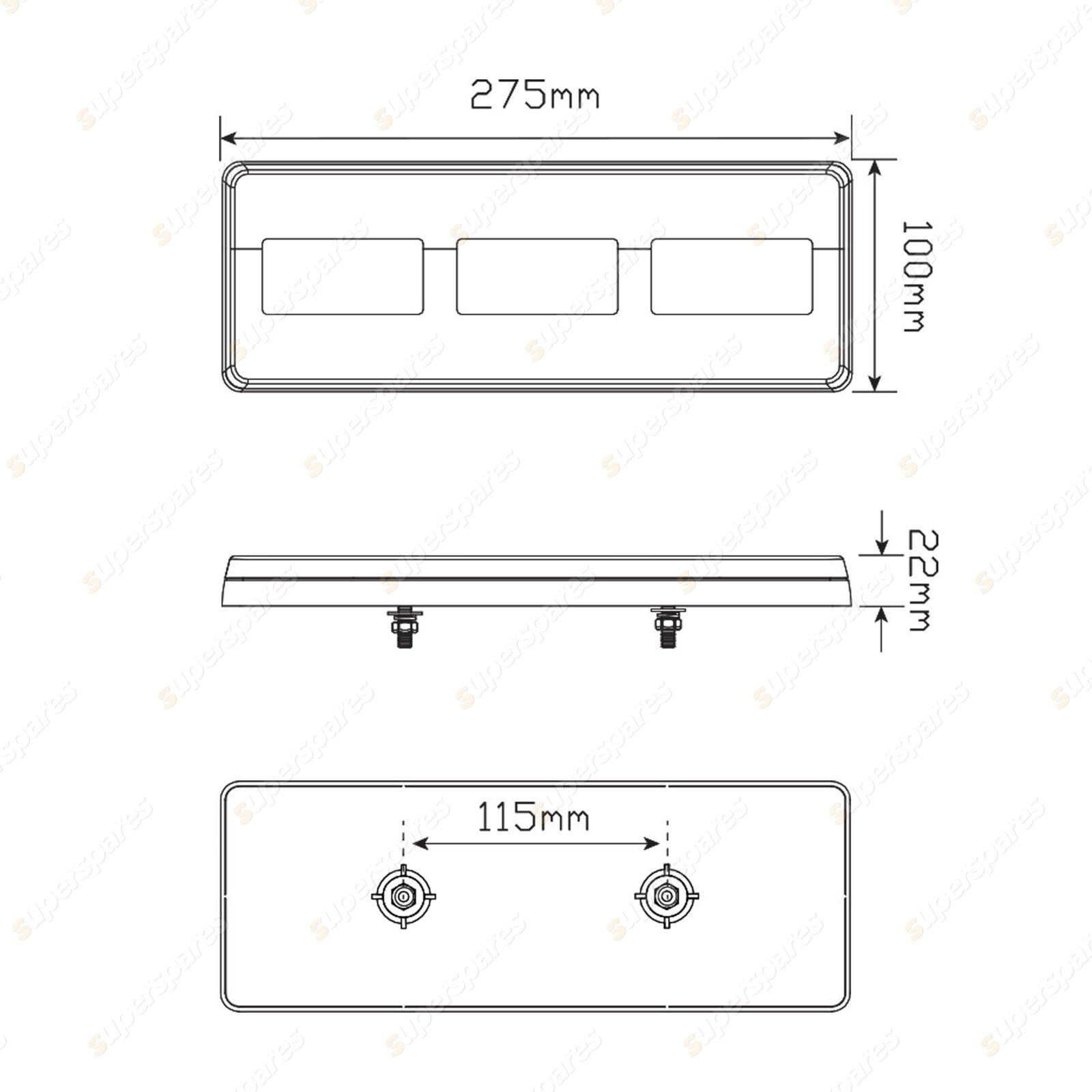 Blister Pack of 1 Stop/Tail/Indicator lamps with reflex reflector to suit Multivolt 12-24 volt. 275 x 100 x 22mm. ADR Approved CRN 38657/38658