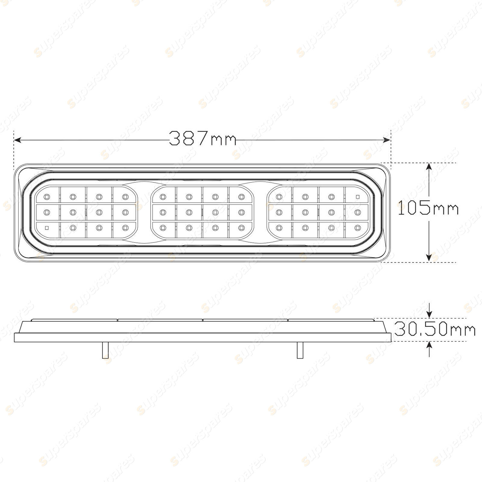Twin Blister with Try Me Function-Stop/Tail/Ind/Rev, Diffused Tail, Multivolt, 387 x 105 x 30.5mm, ECE,