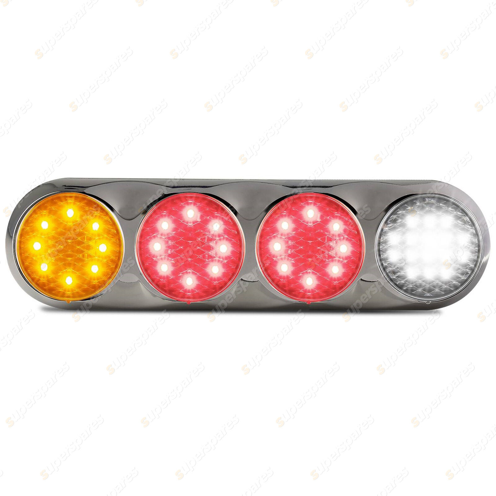 Contents : Stop Tail Indicator Reverse Quad Light - Coloured Lens Chrome