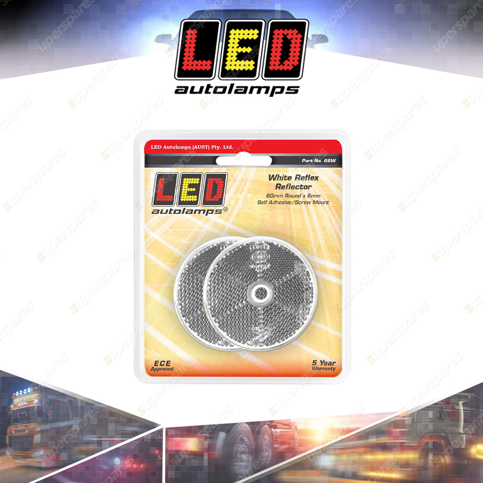 Contents : White Round Reflector - 60mm Round Screw Mount Twin Blister