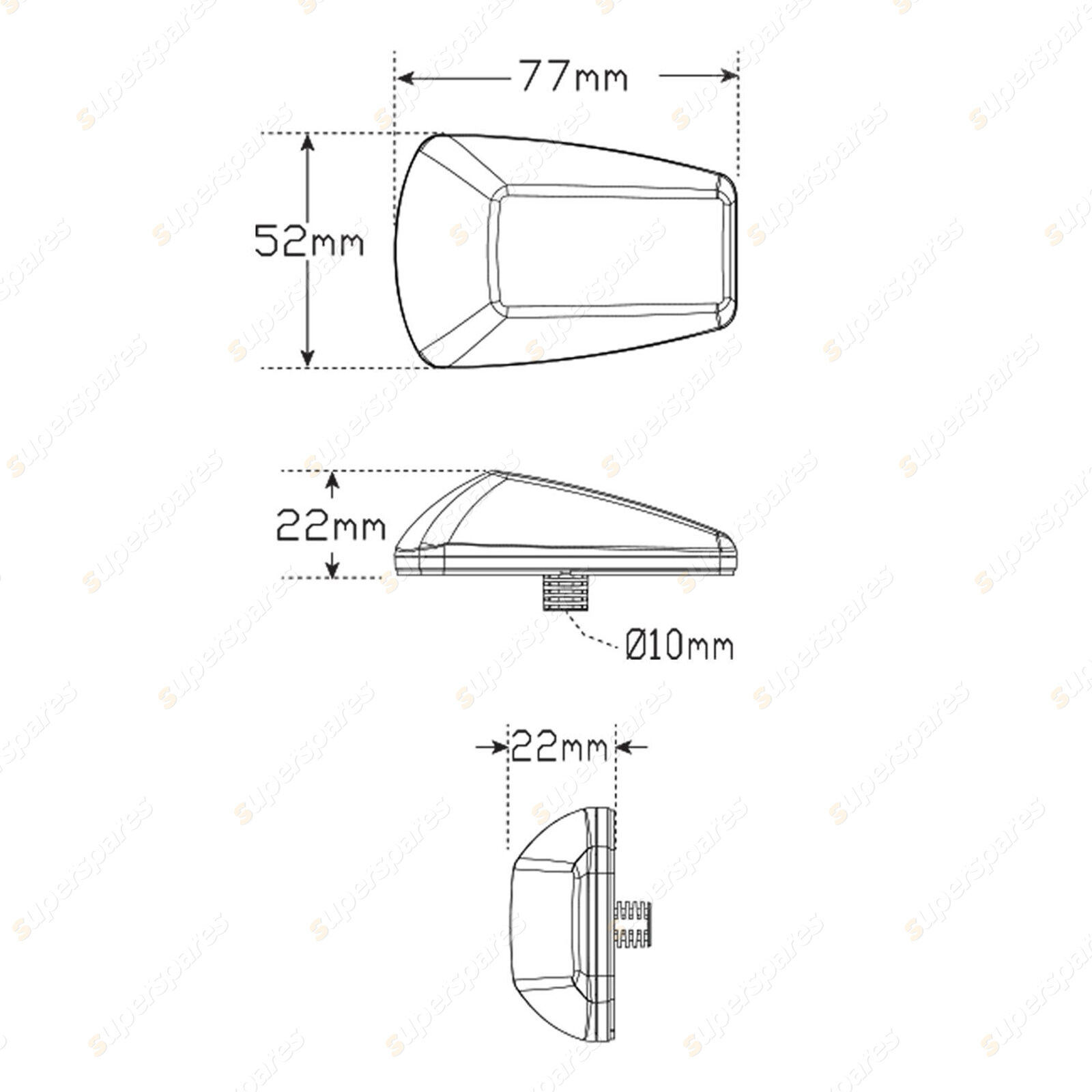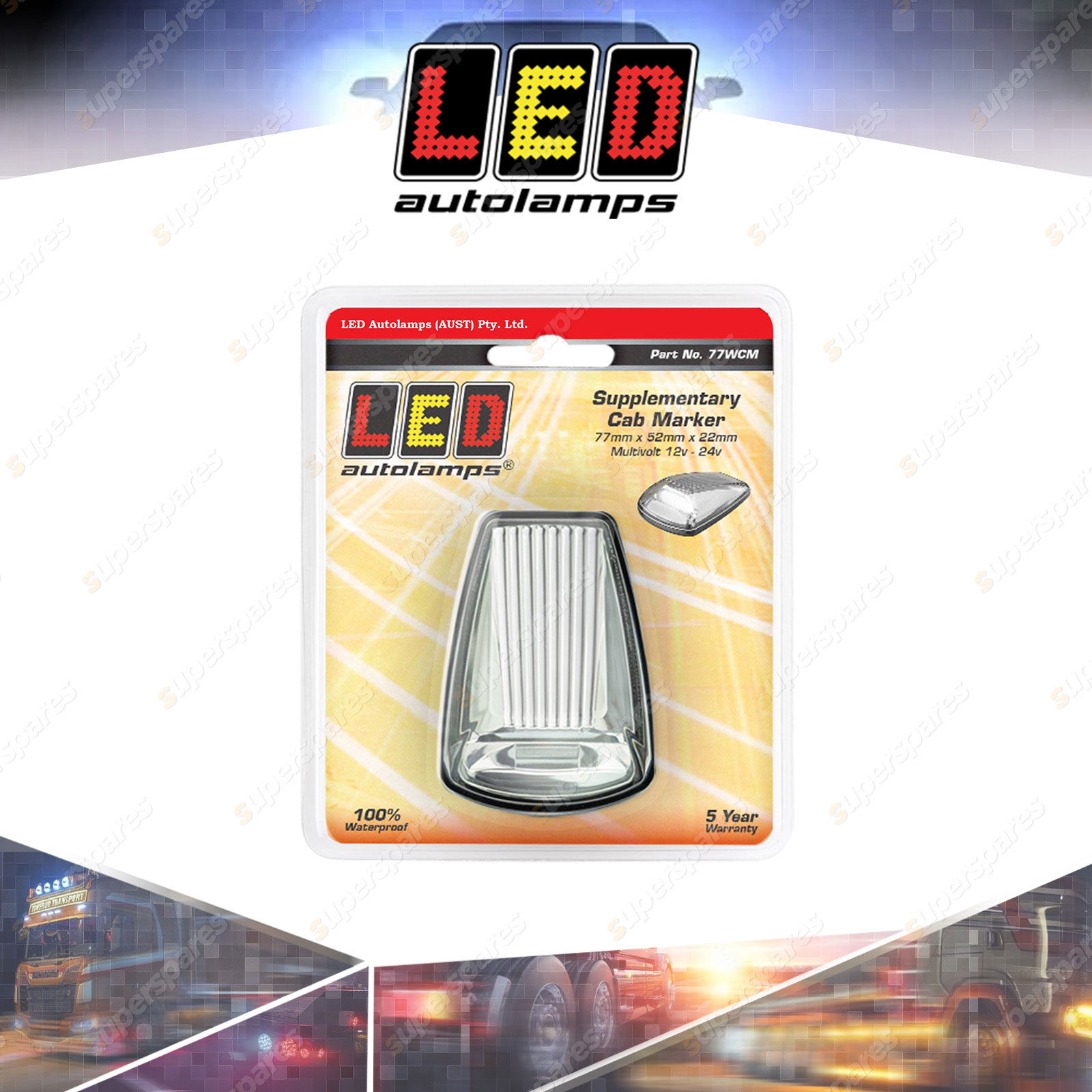 Supplementary cab marker with white LEDs, Clear lens, 9-32 volt, 77mm x 52mm x 22mm, 5 year warranty, Blister