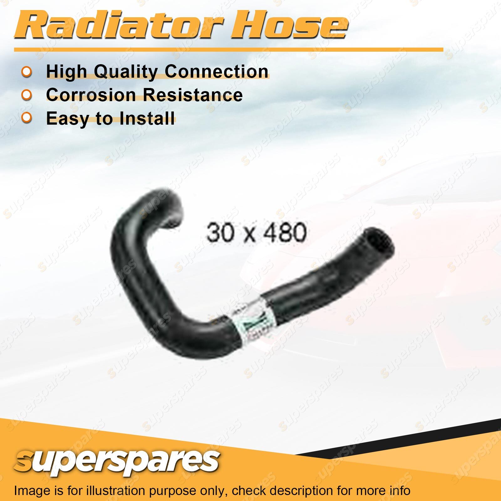 Content : 1 x Radiator Hose Brand : Superspares Position : Lower | Parameter : Length : 480mm Inside Diameter : 30mm |