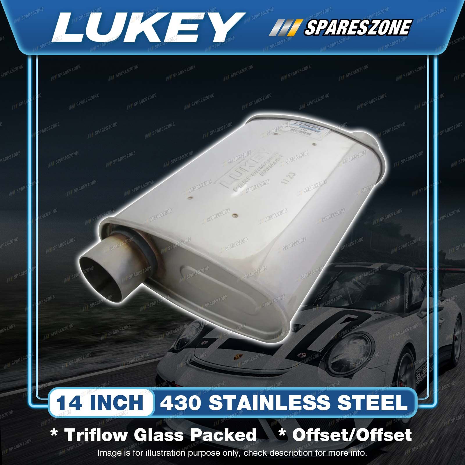 Description: The Lukey 2.5" 10" x 4" oval Triple Flow Super Turbo muffler is perfect for a subtle exhaust note without compromising performance. Handcrafted with passion and expertise in Australia, the Lukey muffler reflects our commitment to quality engineering. Constructed using premium 430-grade stainless steel materials. Beyond its performance Attributes, the Lukey Performance Muffler adds a touch of sophistication to your vehicle's aesthetics. The raw finish and sleek design make it a visual delight, ensuring that your vehicle not only sounds good, but looks good too. |
