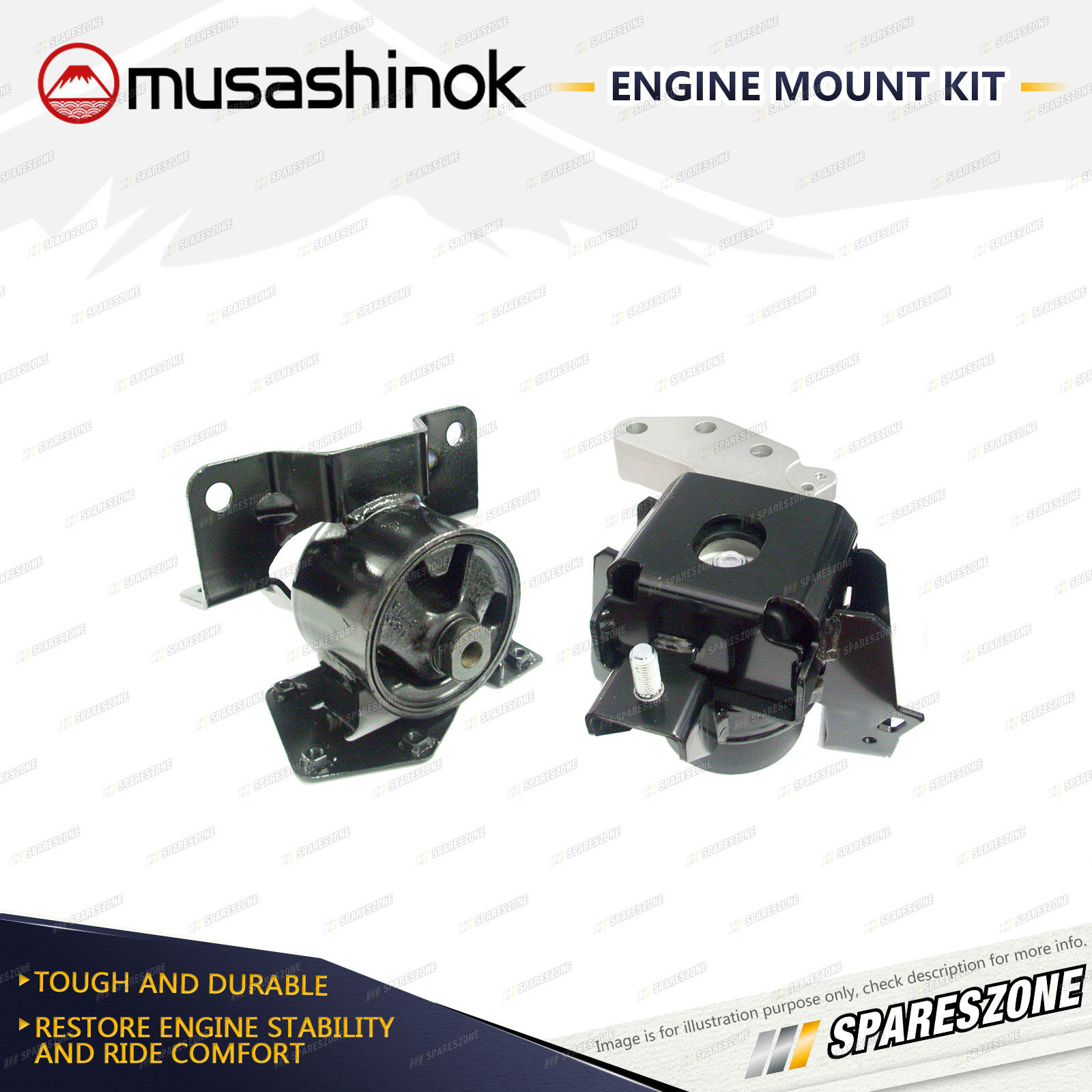 ![]() | About Engine Mounts : Musashinok engine mounts are manufactured to OE standard and very high quality, which is vital given the additional pressure on today's engine mounts.The Musashinok Engine Mount range sets new standards for quality whether manufactured in rubber or urethane.Musashinok's unique urethane design provides rubber-like smoothness and combined with urethanes durability, gives an added advantage over similar products manufactured with rubber. This makes them an ideal product for use in taxis and other commercial fleets. |