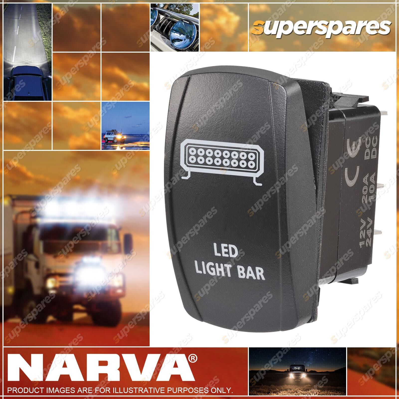 Content: 12 / 24V Off/On LED Illuminated Sealed Rocker Switch with "LED Light Bar" Symbol (Bl