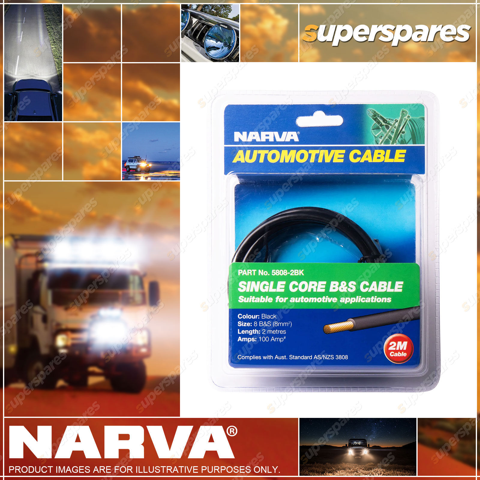 Content: Narva 2M Black Battery & Starter Cable - 6 B&S