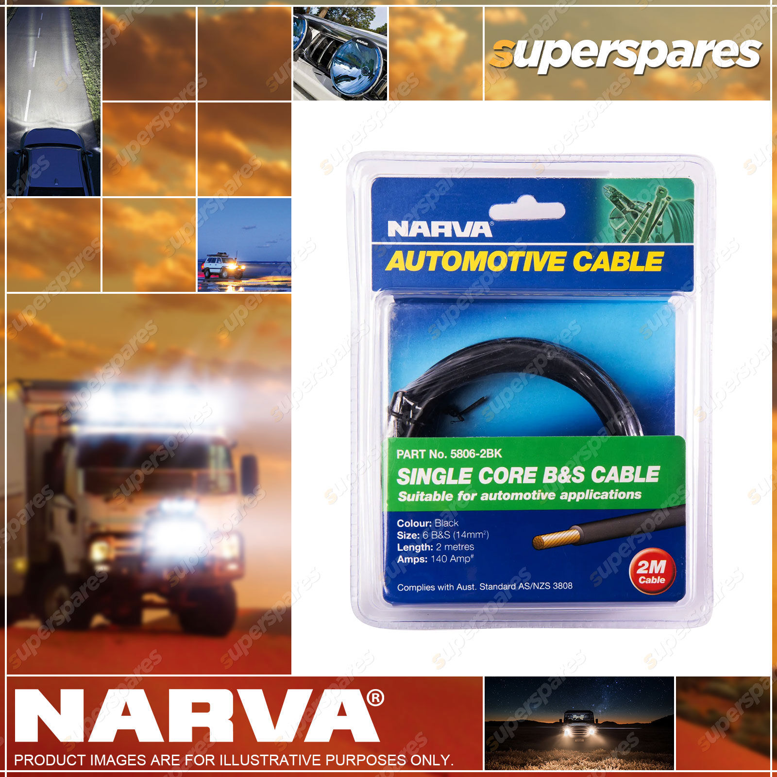 Content: Narva 2M Black Battery & Starter Cable - 8 B&S