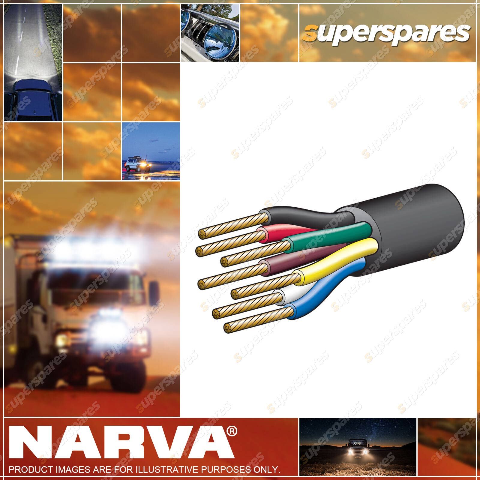 Content: 5A 2.5mm 7 CORE TRAILER Cable (30M) Red, Green, Yelllow, White, Brown with Black sheath