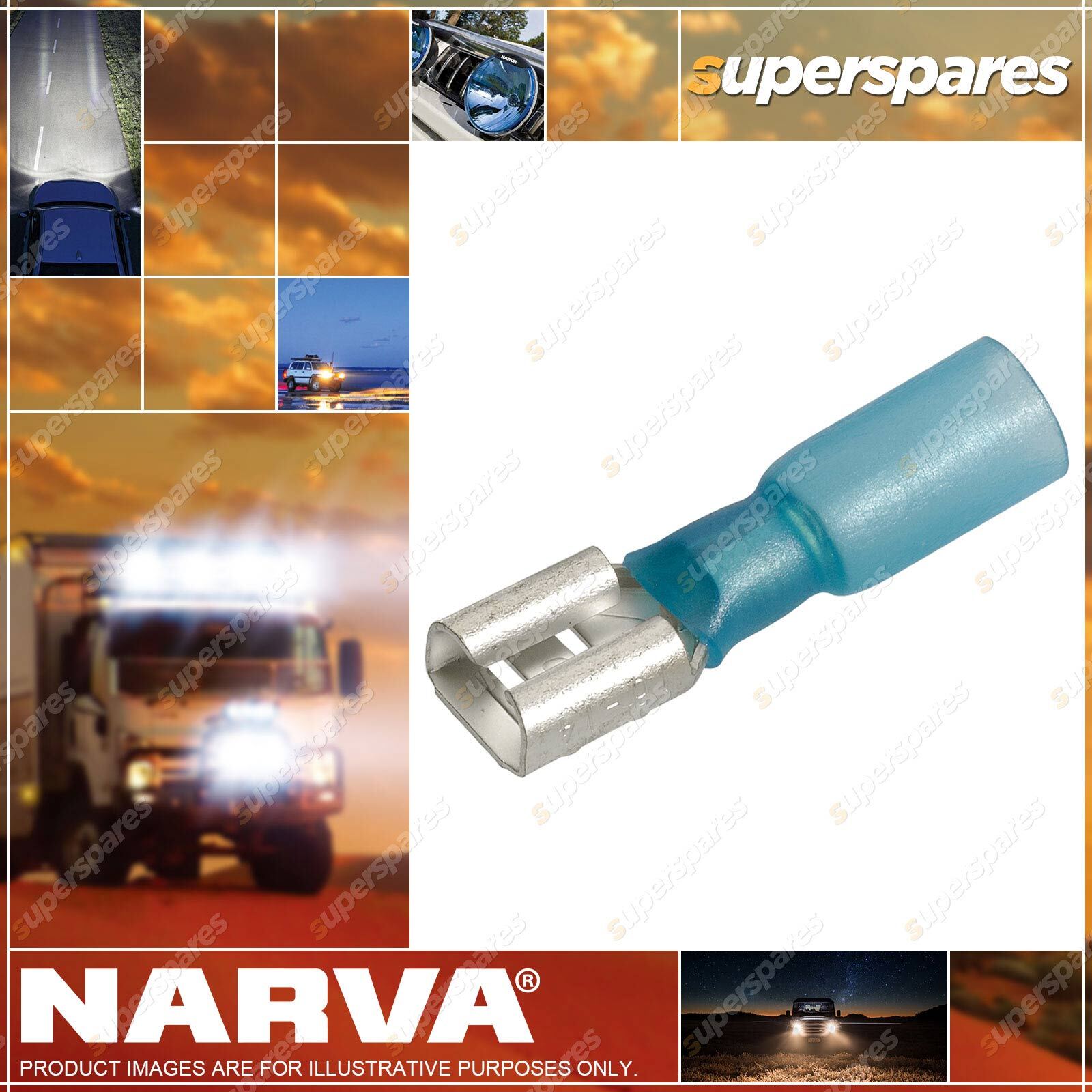 Content: 6.3 x 0.8mm ADHESIVE LINED FEMALE BLADE TERMINAL BLUE (Blister pack of 20)