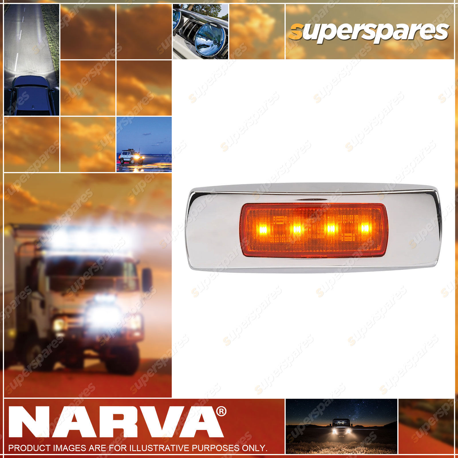 Content: Narva 9-33V LED Front End Outline Marker Amber Chrome Cover and 0.5m Cable