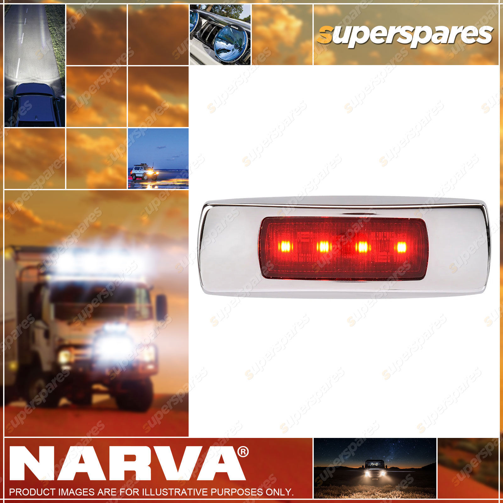 Content: Narva 9-33V Surface Mount LED Rear End Outline Marker Red With Chrome Cover