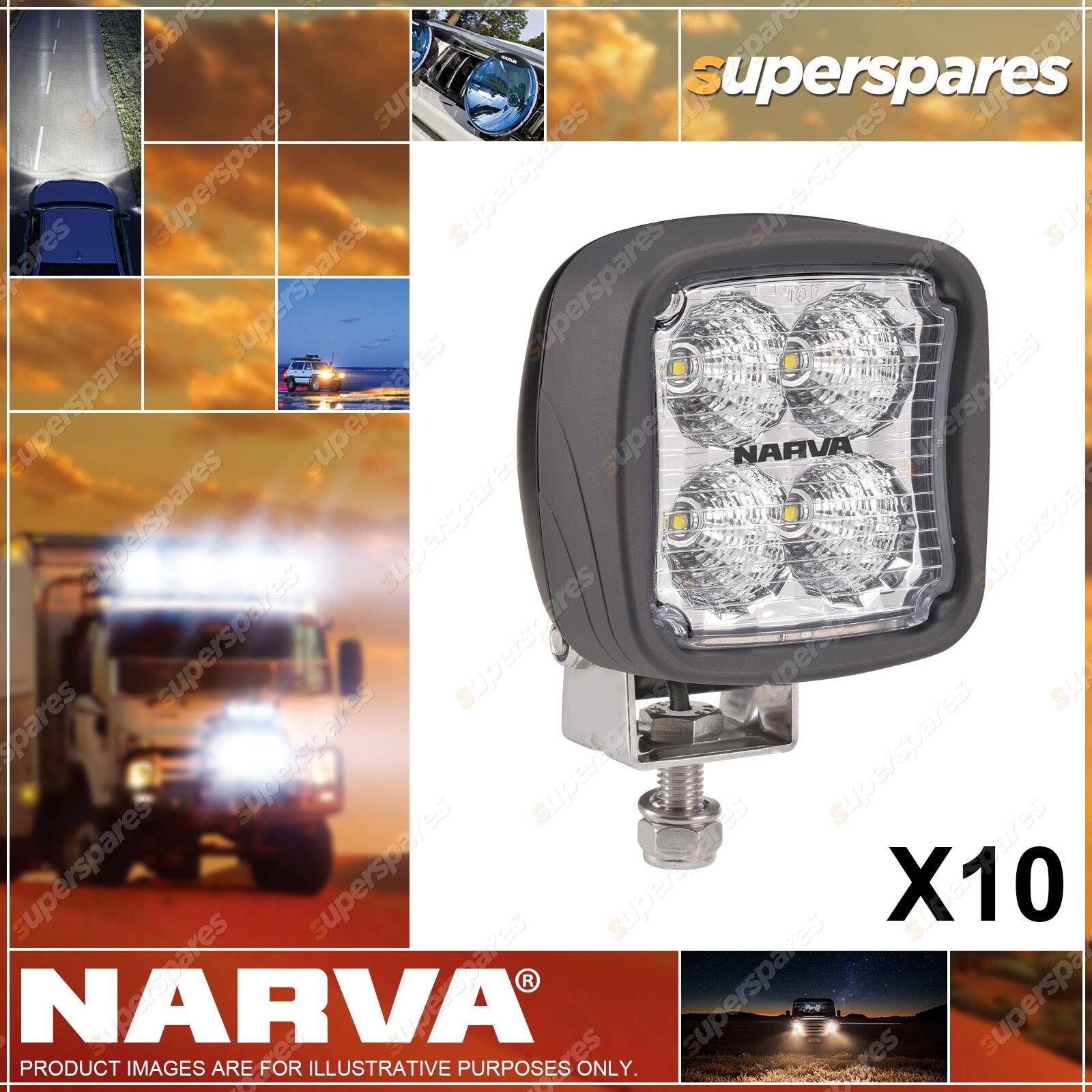 Content :Narva 9-64 Volt LED Work Lamp Flood Beam 2000 Lumens Bulk - Pack of 10