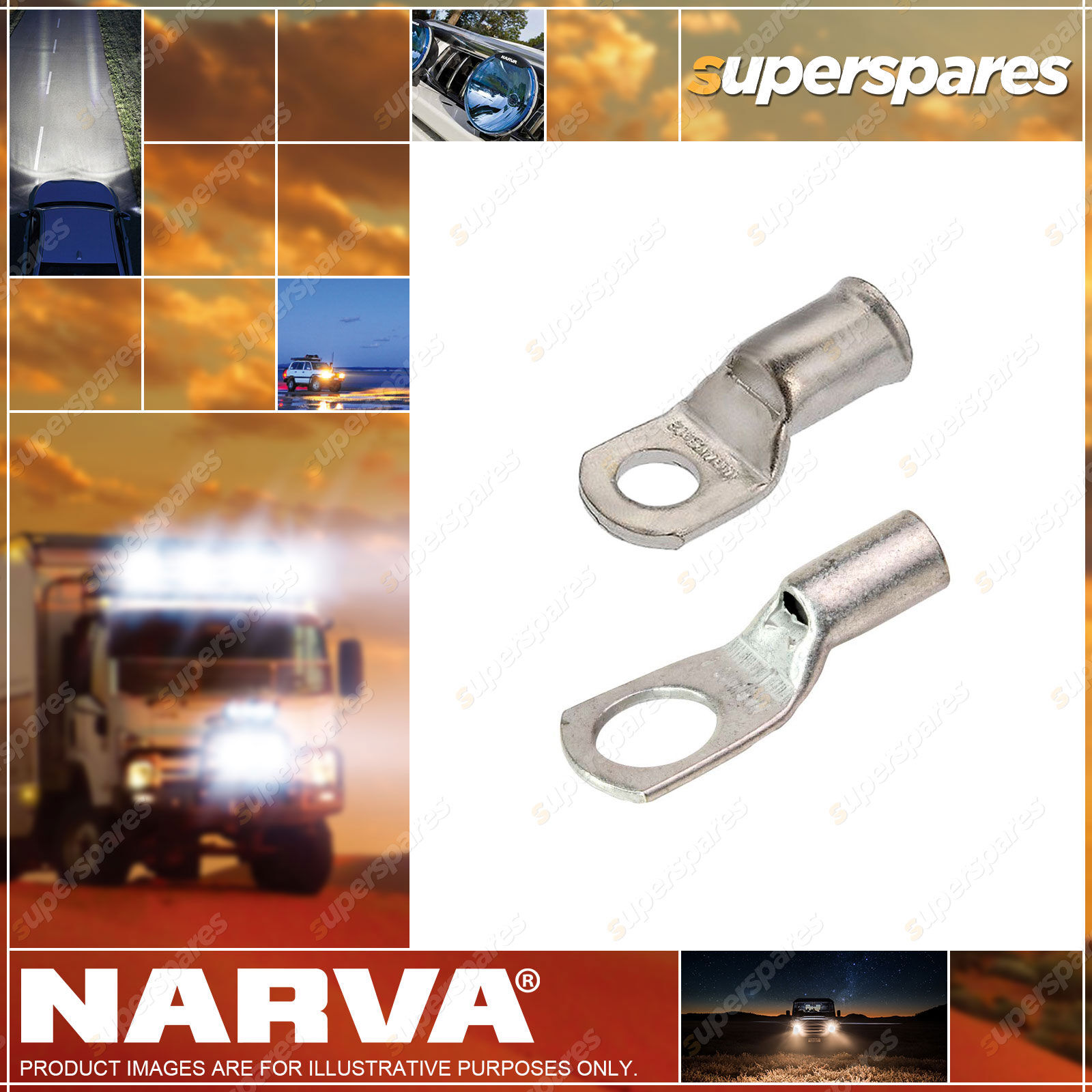 Narva Battery Cable Lugs Eyelet 4.6mm 6 & 8 Stud 10mm² 8 B&S - 2 Packs of 10