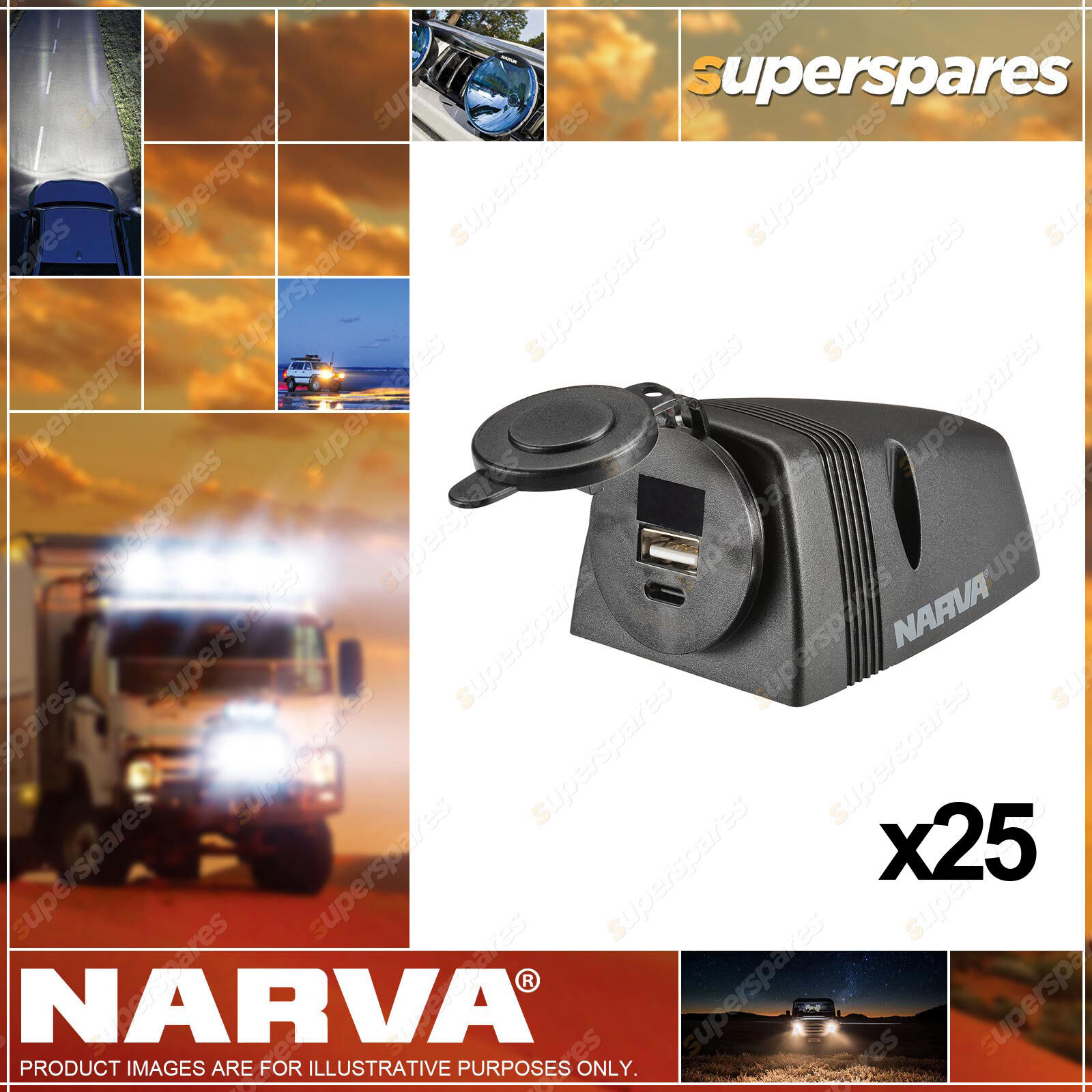 Narva Heavy-Duty Surface-Mount Dual USB/USB-C Socket - Black Housing (25 Pack)