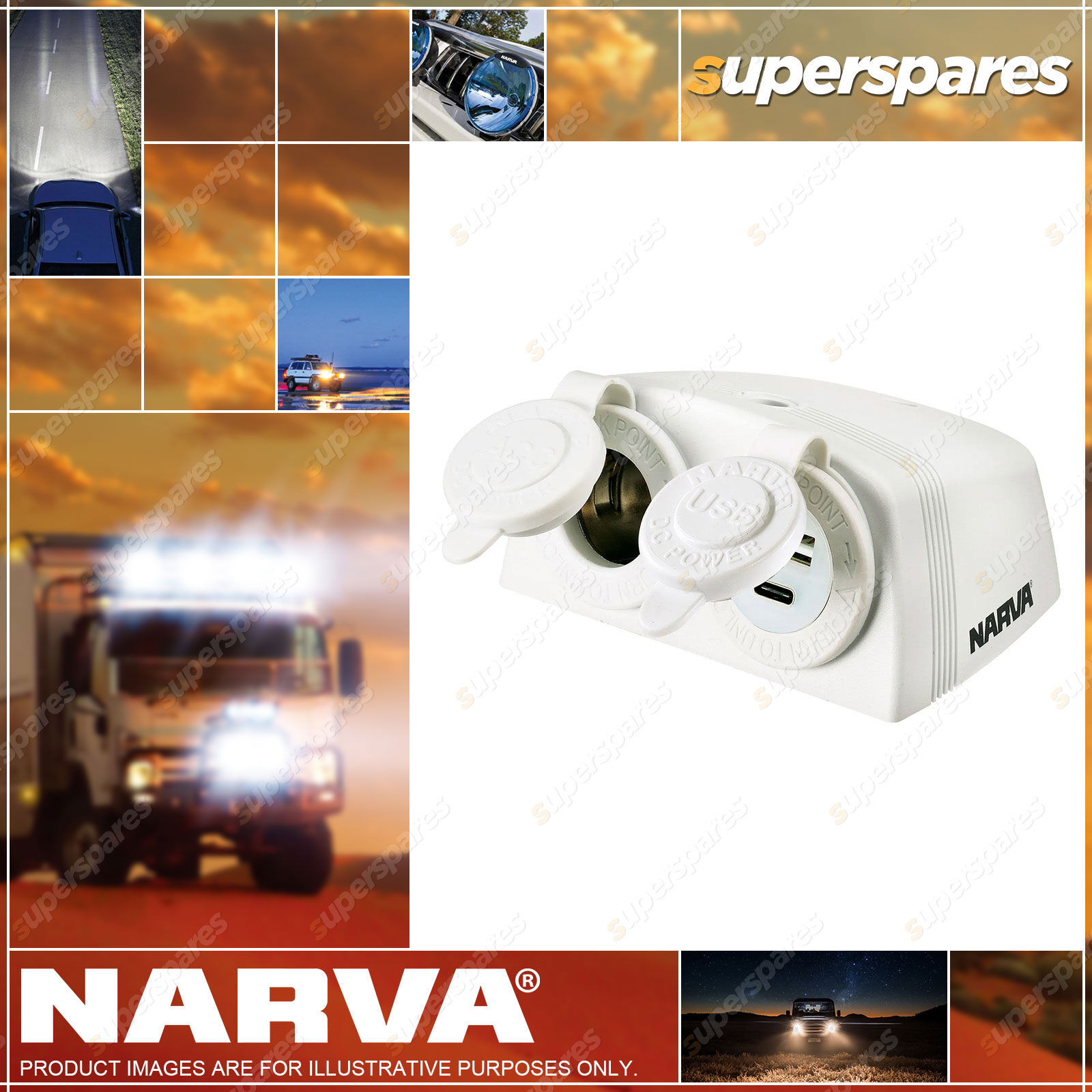 Content: Narva Heavy-Duty Twin Accessory / USB / USB-C Socket - White