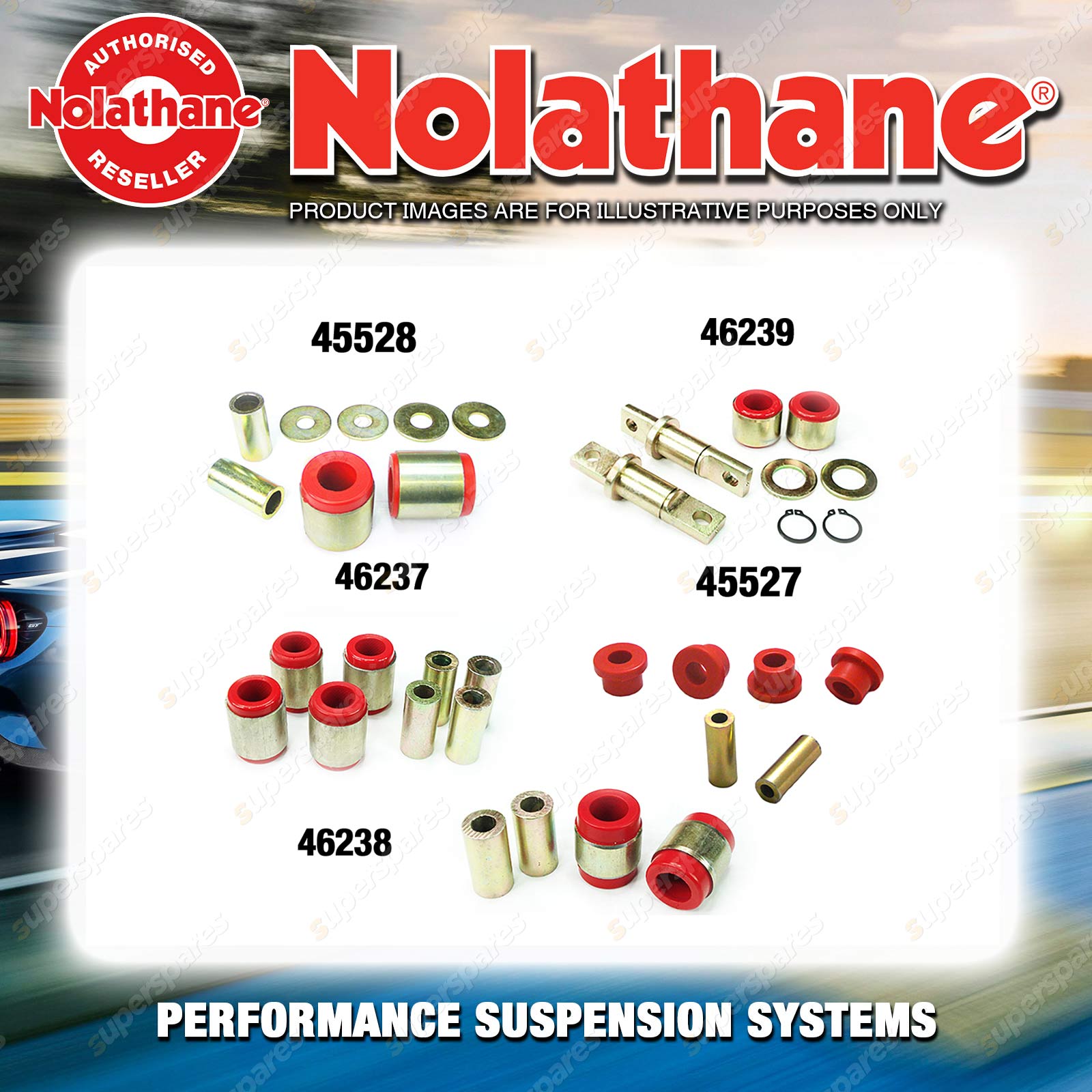 | Nolathane offers a complete range of suspension system.And Nolathane suspension bushing synchronise your suspension system for optimal safety, hangdling and performance .Whether you intend to build a Street Machine, Fast 4, go bush or simply drive to work,suspension bushes are the link between your vehicle and it's springs,struts and shock absorbers.Suspension bushes provide the movement and/or mounting points in your vehicle's suspension system. |