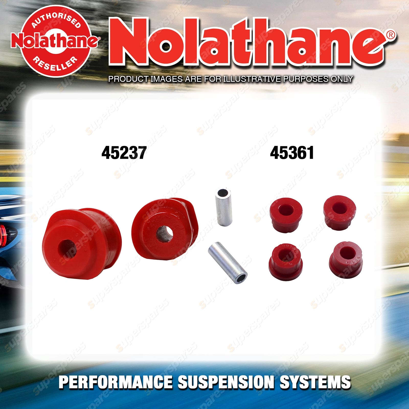 | Nolathane offers a complete range of suspension system.And Nolathane suspension bushing synchronise your suspension system for optimal safety, hangdling and performance .Whether you intend to build a Street Machine, Fast 4, go bush or simply drive to work,suspension bushes are the link between your vehicle and it's springs,struts and shock absorbers.Suspension bushes provide the movement and/or mounting points in your vehicle's suspension system. |