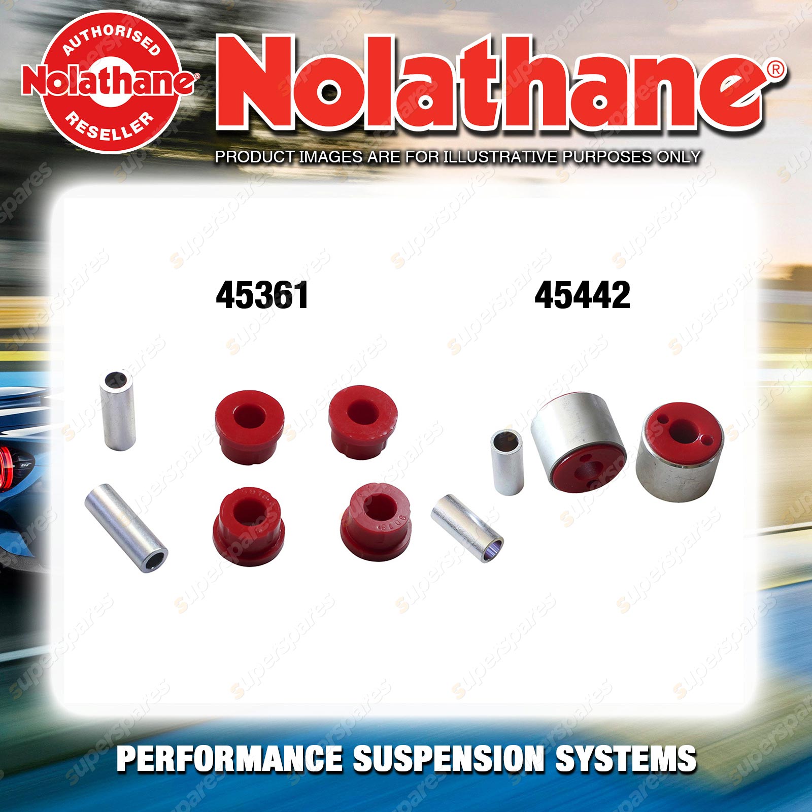 | Nolathane offers a complete range of suspension system.And Nolathane suspension bushing synchronise your suspension system for optimal safety, hangdling and performance .Whether you intend to build a Street Machine, Fast 4, go bush or simply drive to work,suspension bushes are the link between your vehicle and it's springs,struts and shock absorbers.Suspension bushes provide the movement and/or mounting points in your vehicle's suspension system. |