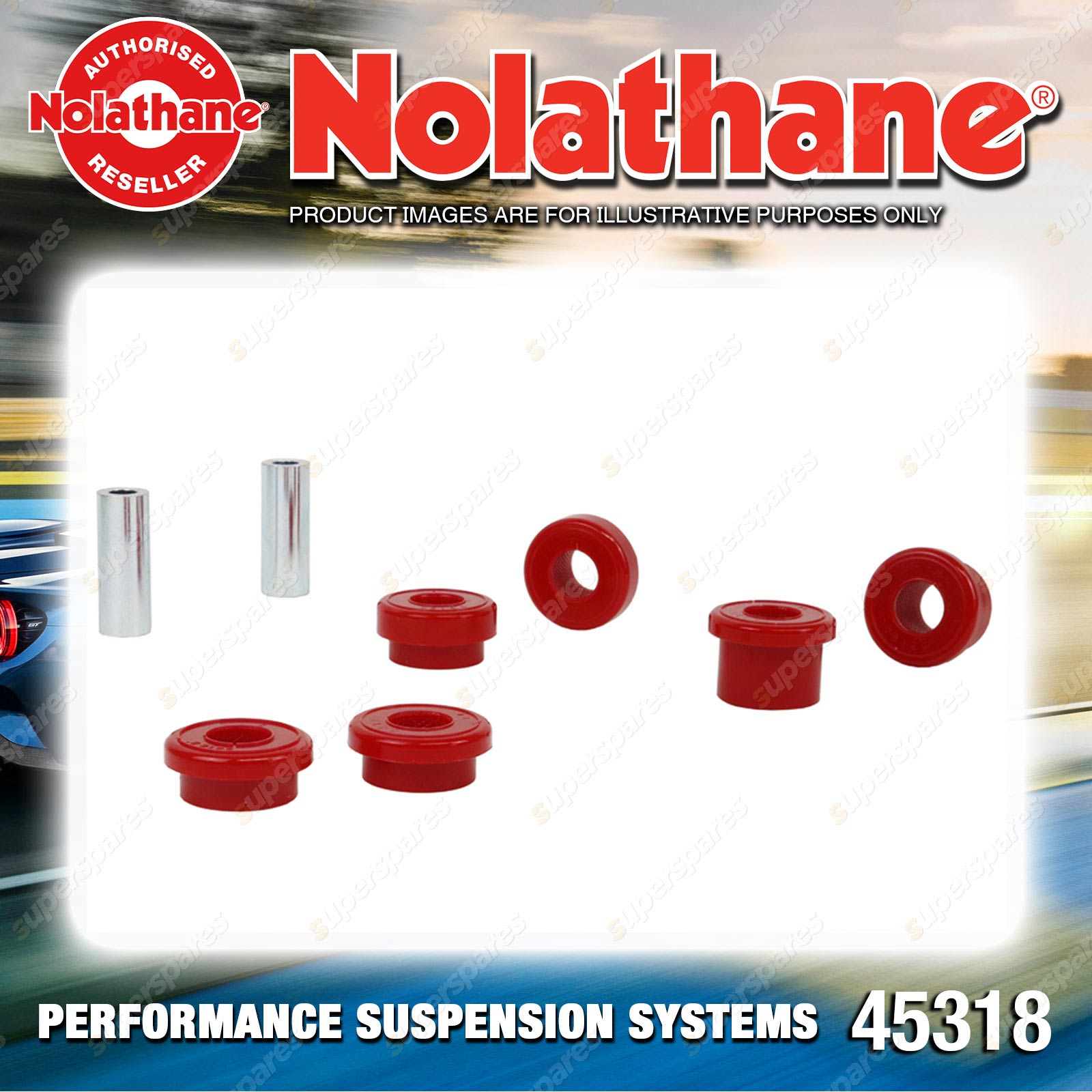 | Contents : Nolathane Front Control arm - lower inner bushing Warranty : 3 Year / 60,000Kms Kit Contents : 6 Bushings, 2 Tubes, Install Guide, Grease |