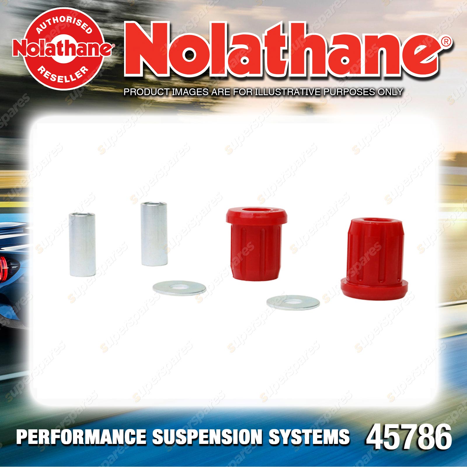 | Contents : Nolathane Front Control arm - lower inner rear bushing Warranty : 3 Year / 60,000Kms Kit Contents : 2 Bushings, 2 Tubes, 2 Washers, Grease |