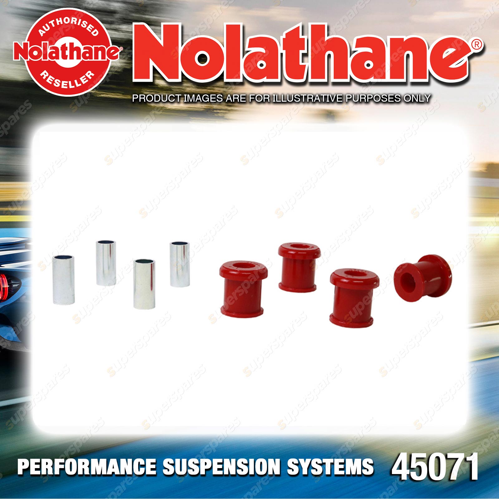 | Nolathane offers a complete range of suspension system.And Nolathane suspension bushing synchronise your suspension system for optimal safety, hangdling and performance .Whether you intend to build a Street Machine, Fast 4, go bush or simply drive to work,suspension bushes are the link between your vehicle and it's springs,struts and shock absorbers.Suspension bushes provide the movement and/or mounting points in your vehicle's suspension system. |