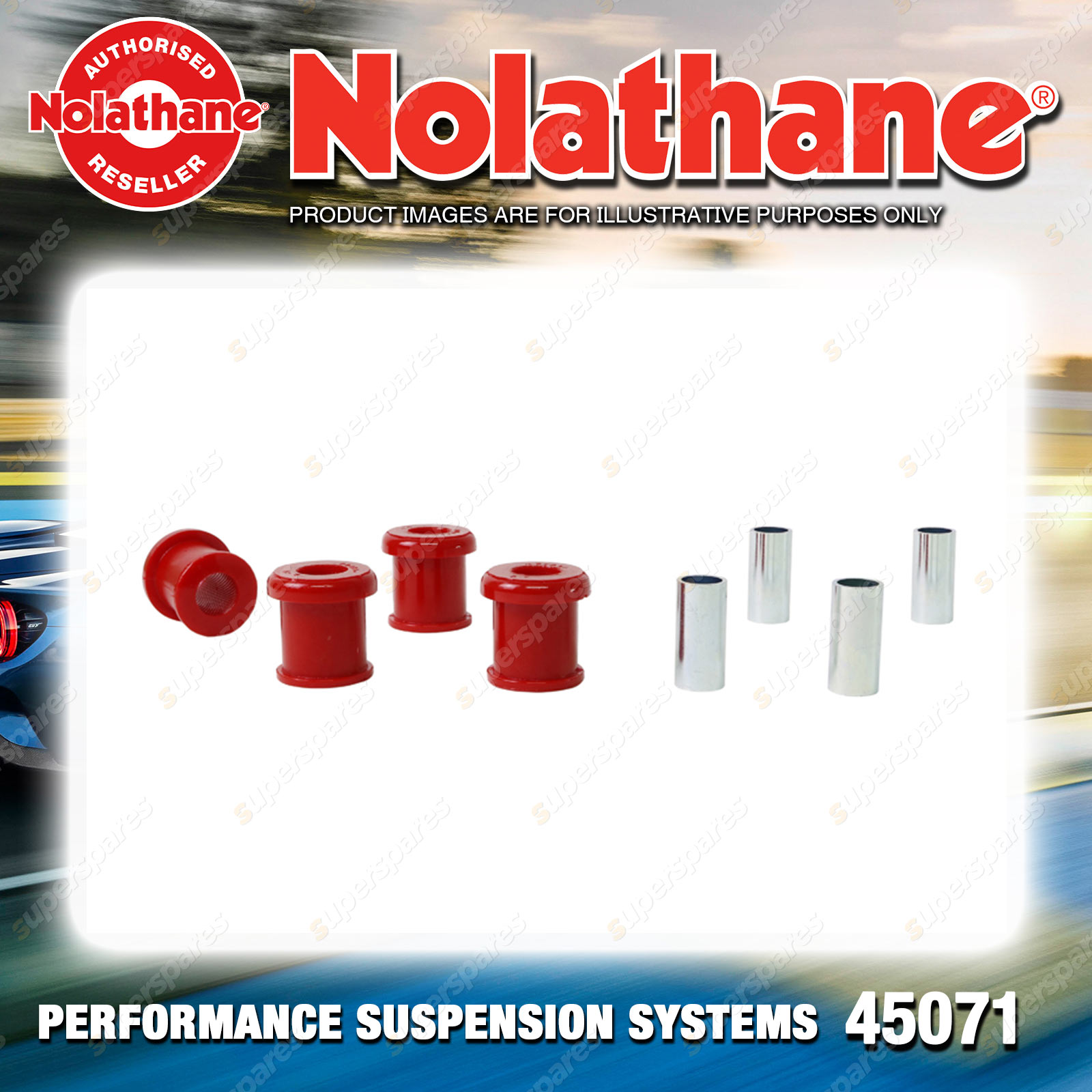 | Nolathane offers a complete range of suspension system.And Nolathane suspension bushing synchronise your suspension system for optimal safety, hangdling and performance .Whether you intend to build a Street Machine, Fast 4, go bush or simply drive to work,suspension bushes are the link between your vehicle and it's springs,struts and shock absorbers.Suspension bushes provide the movement and/or mounting points in your vehicle's suspension system. |