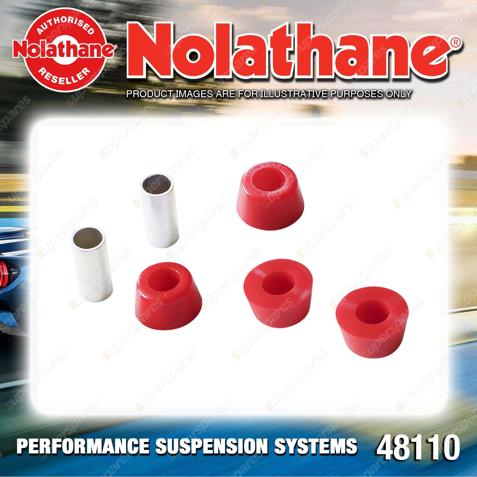 | Contents : Nolathane Front Strut rod - to chassis bushing Warranty : 3 Year / 60,000Kms Kit Contents : 4 Bushings, 2 Tubes, Grease |