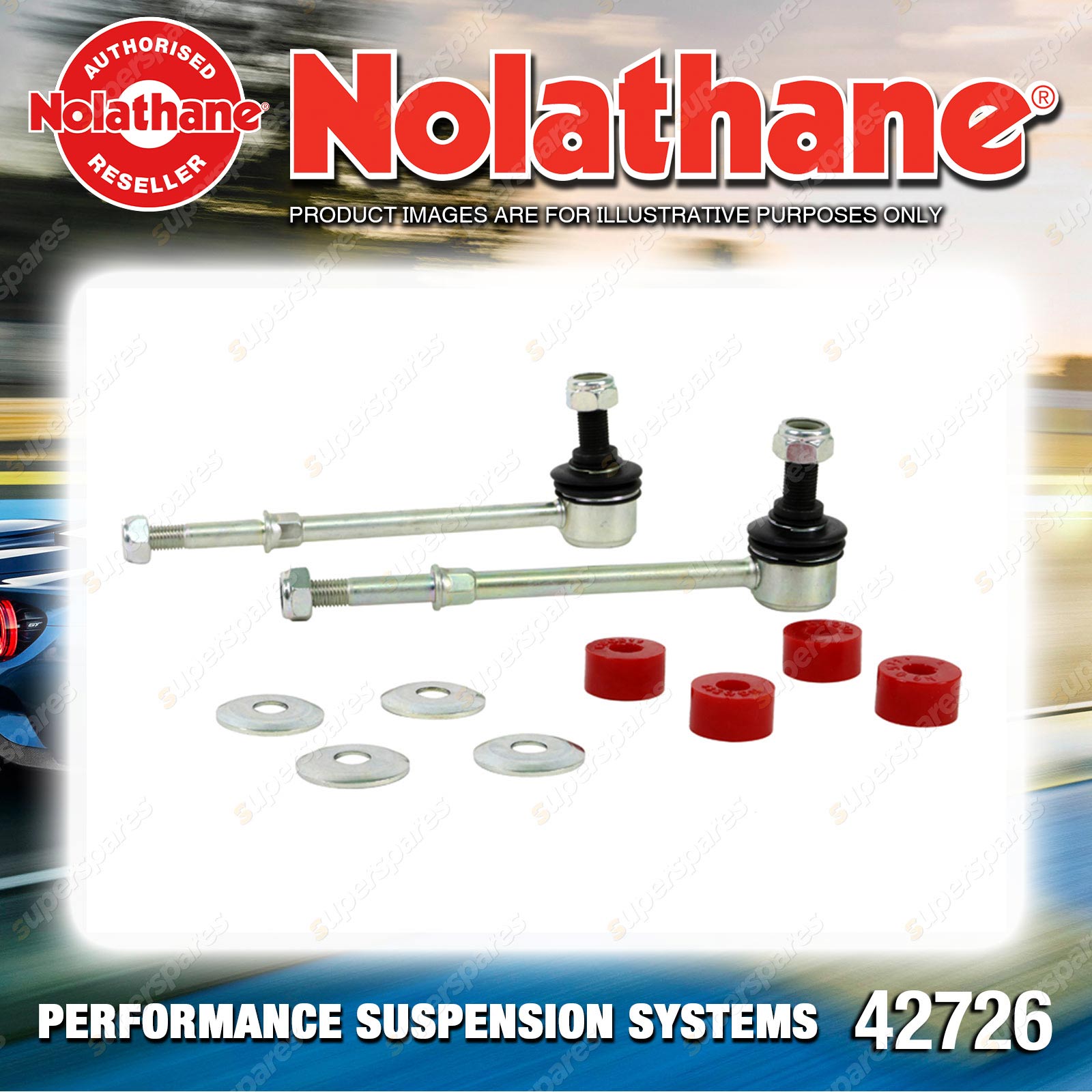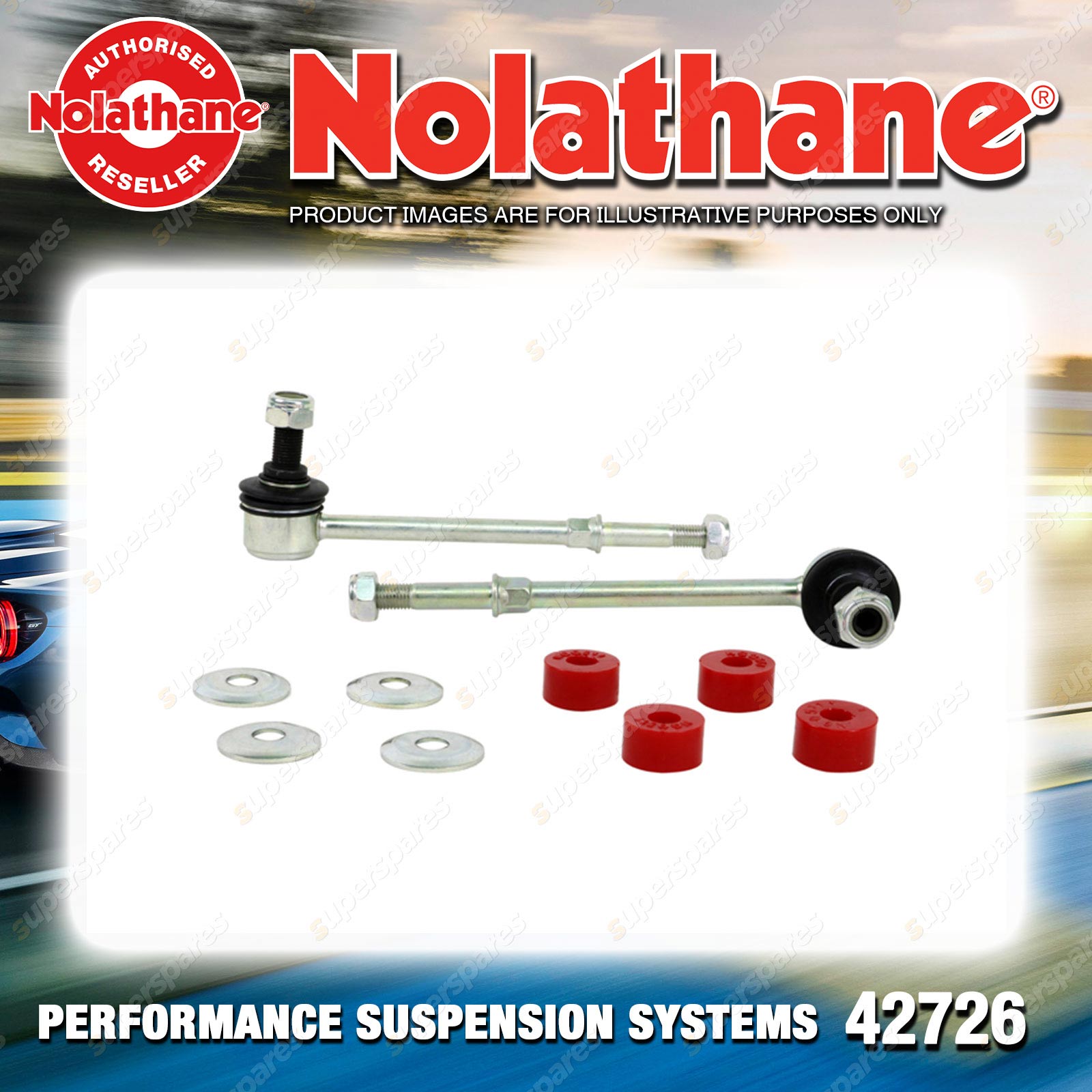 | Contents : Nolathane Front Sway bar - link Warranty : 3 Year / 60,000Kms Kit Contents : 2 Links, 4 Bushings, 4 Washers |