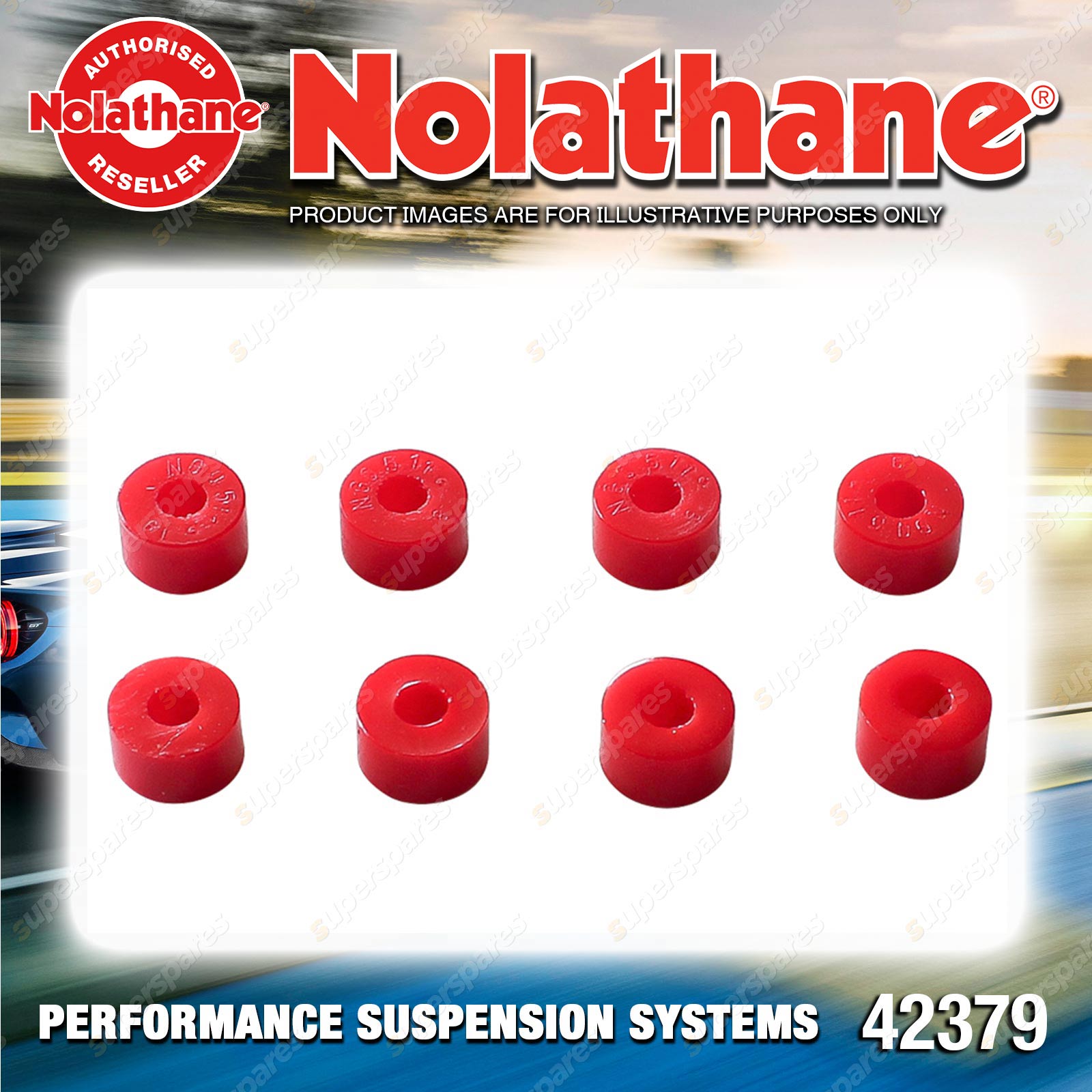 | Contents : Nolathane Front Sway bar - link bushing Warranty : 3 Year / 60,000Kms Kit Contents : 8 Bushings |