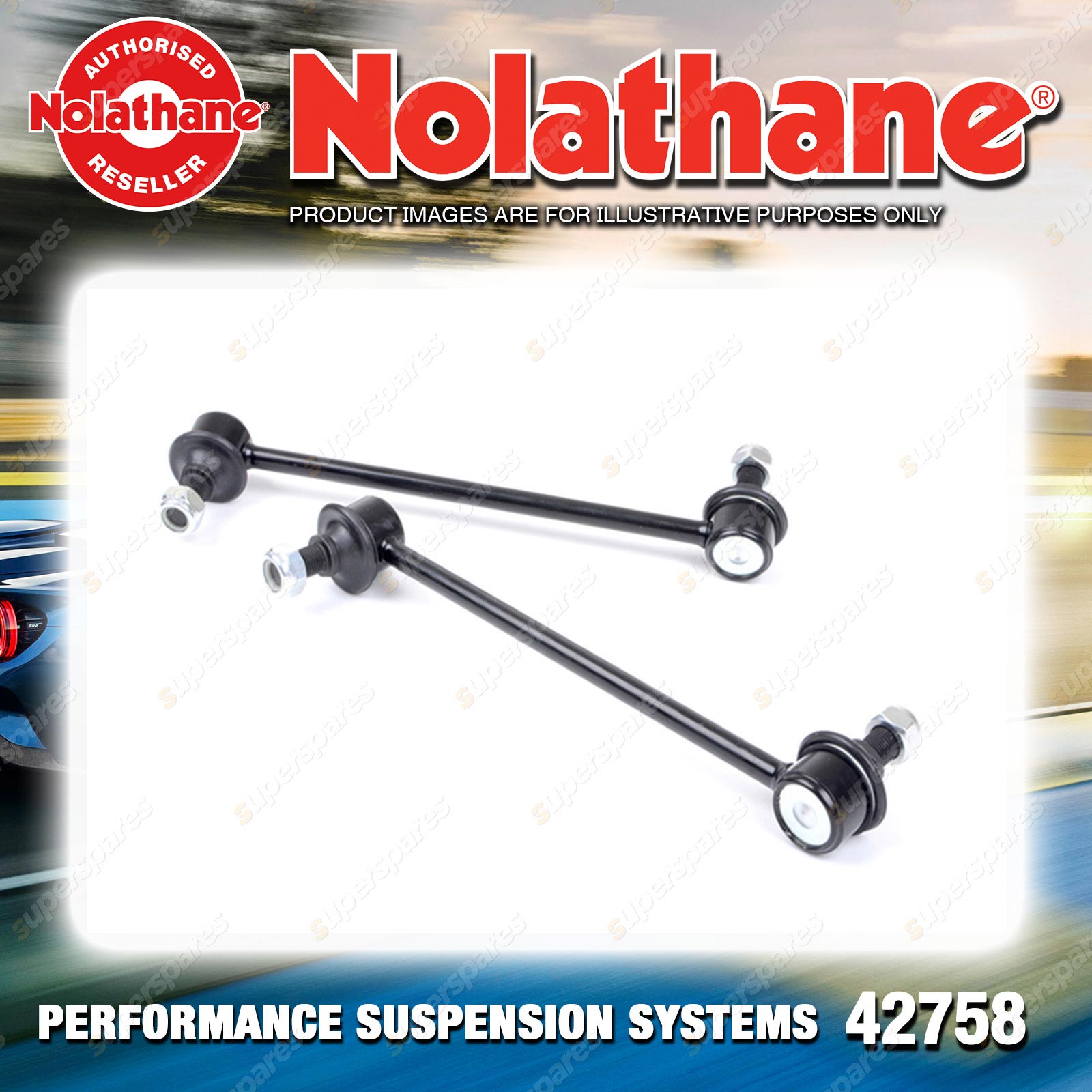 | Contents : Nolathane Front Sway bar - link Warranty : 3 Year / 60,000Kms Kit Contents : 2 Links |