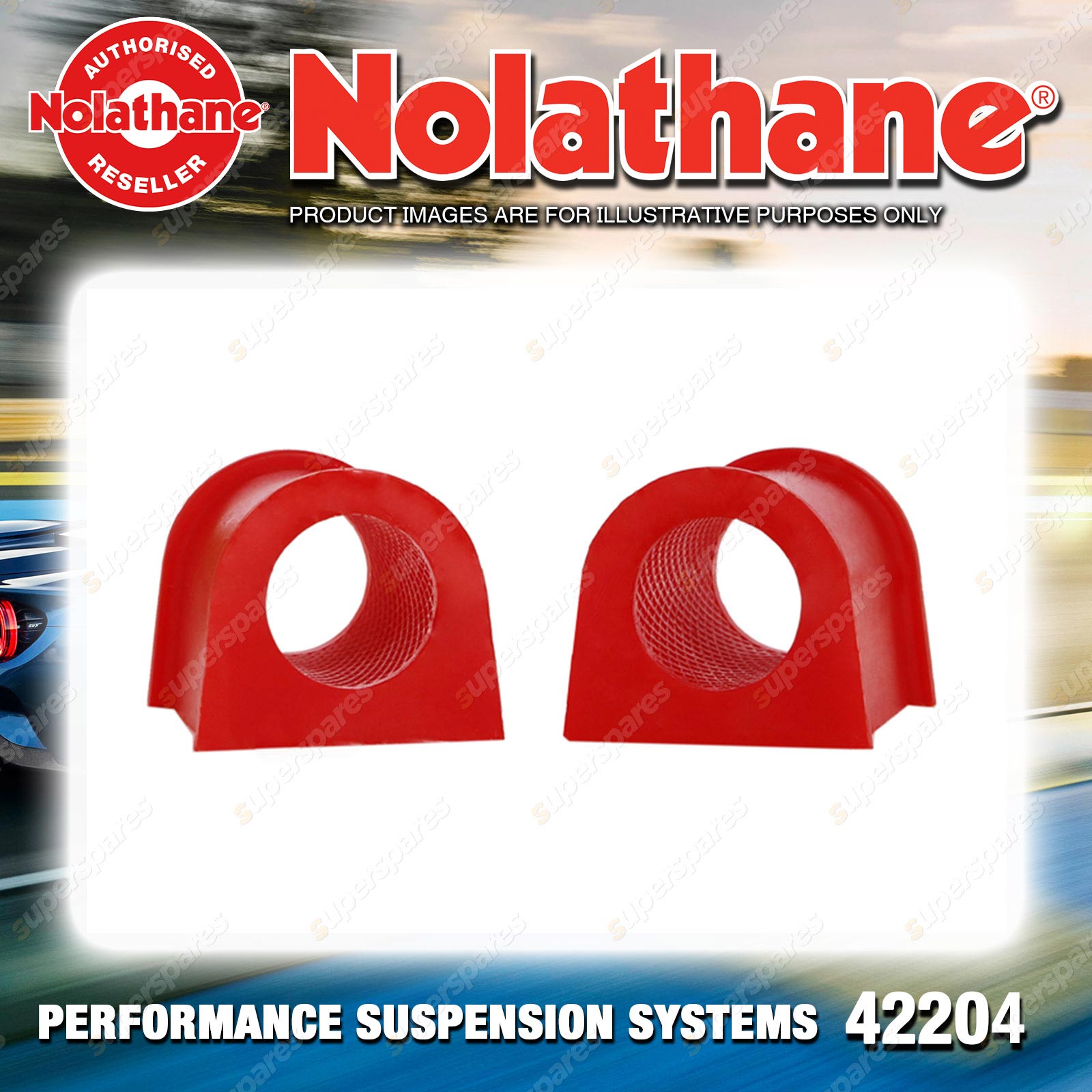 | Contents : Nolathane Front Sway bar - mount bushing Warranty : 3 Year / 60,000Kms Kit Contents : 2 Bushings, Grease |